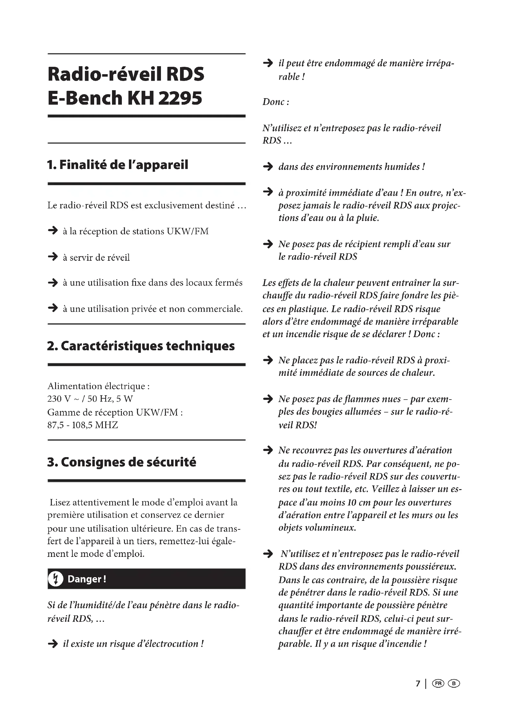 Le radio-reveil RDS est exclusivement destiné ...