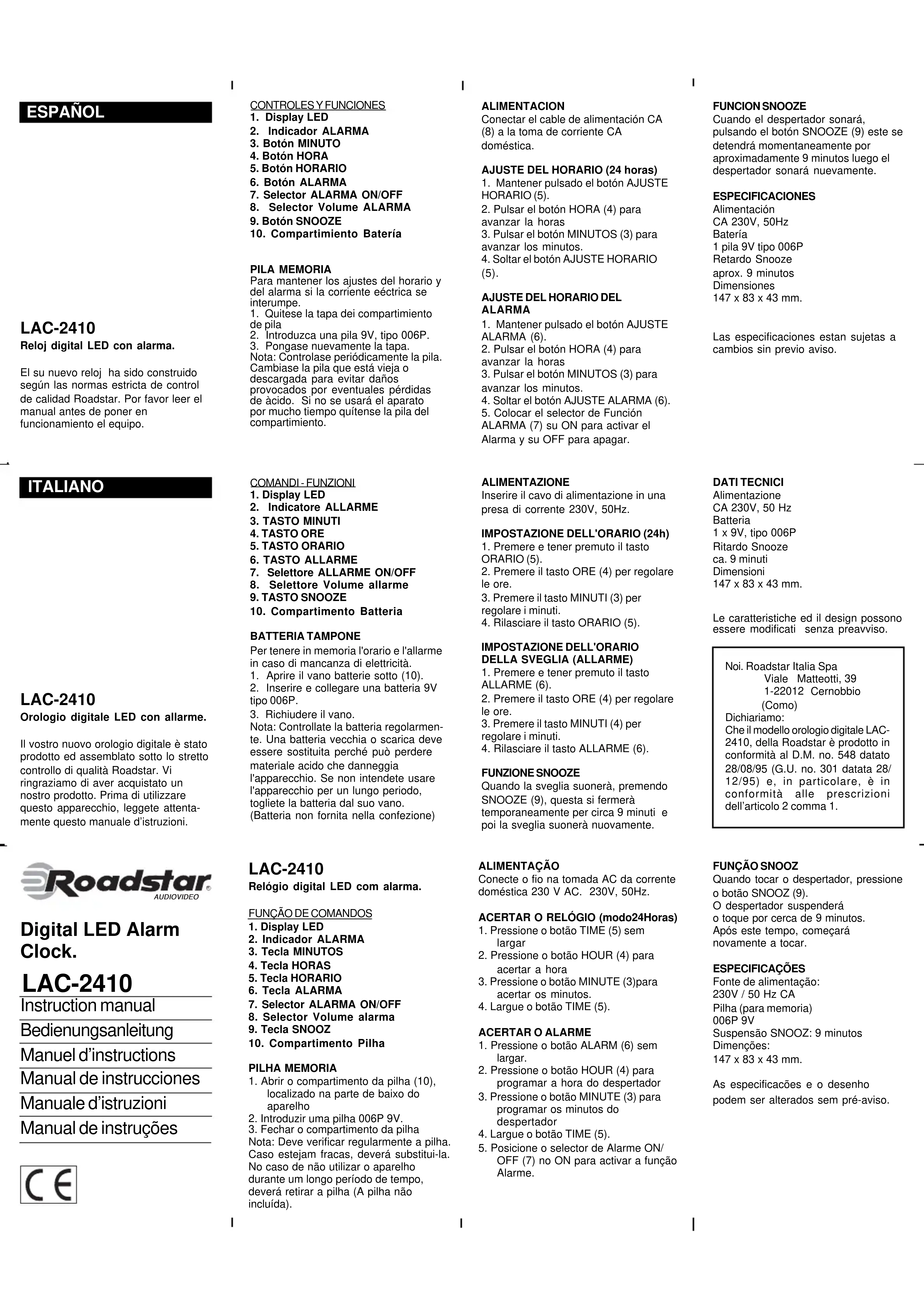 Retrouvez gratuitement la notice de l'appareil LAC2410 ROADSTAR au format PDF.