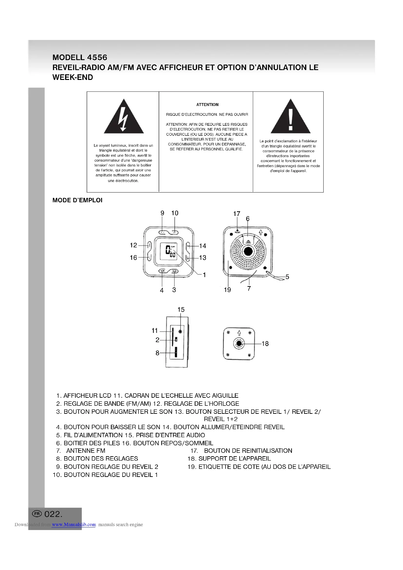 4556 - Radio-réveil ELTA - Notice d'utilisation et mode d'emploi gratuit
