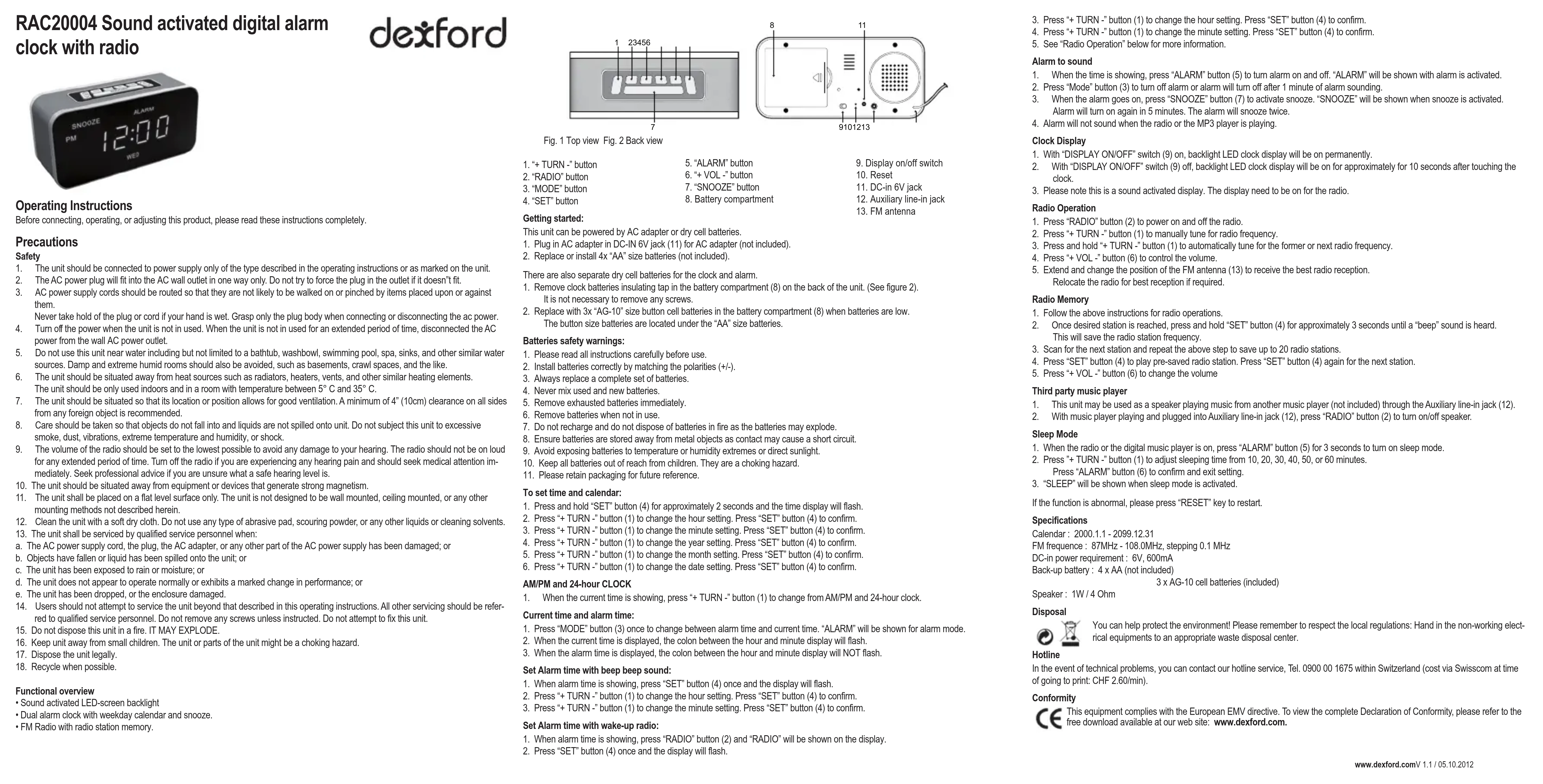 RAC20004 - Radio-réveil Dexford - Notice d'utilisation et mode d'emploi gratuit