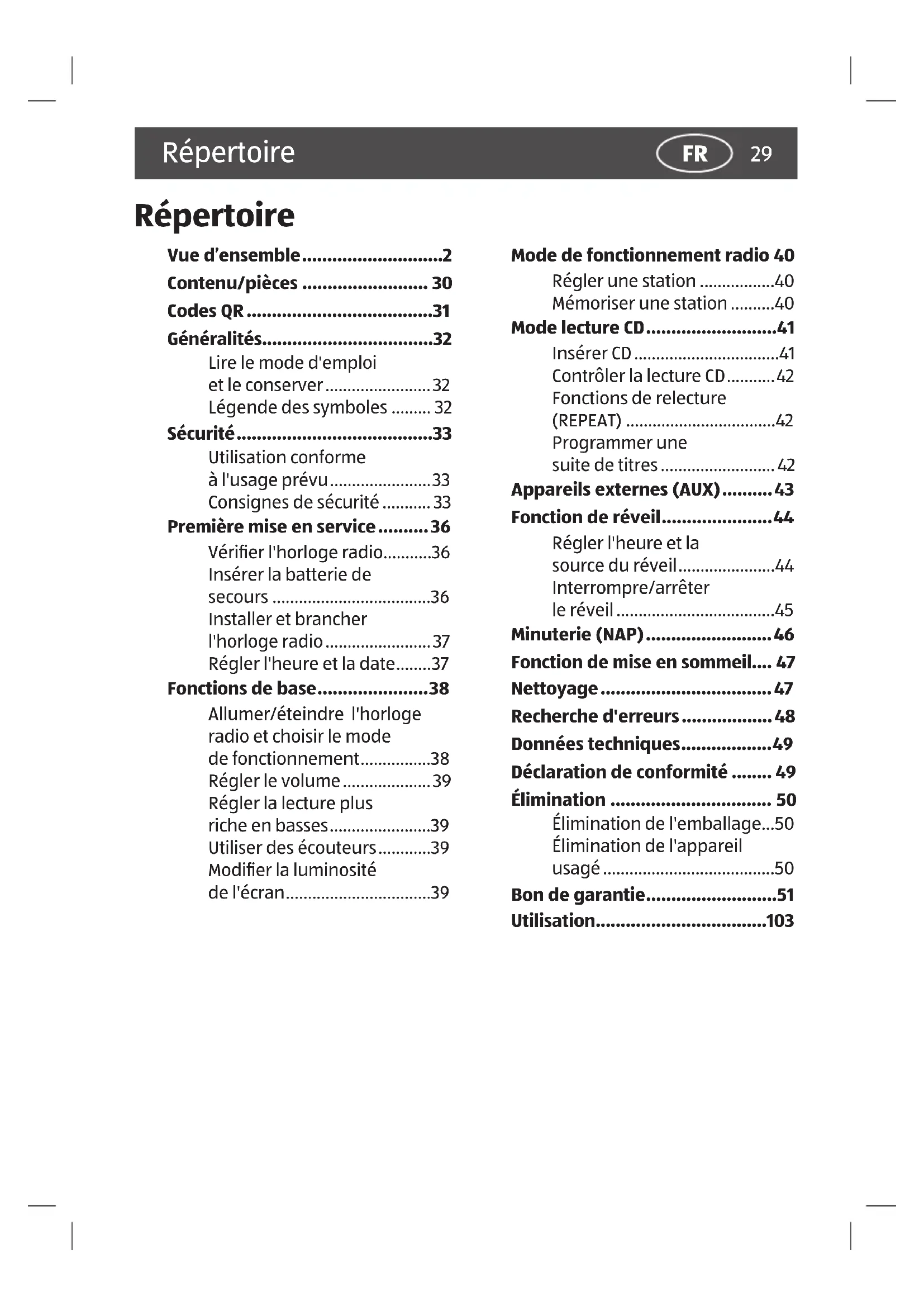 - Lire le mode d'emploi et le conserver p. 32