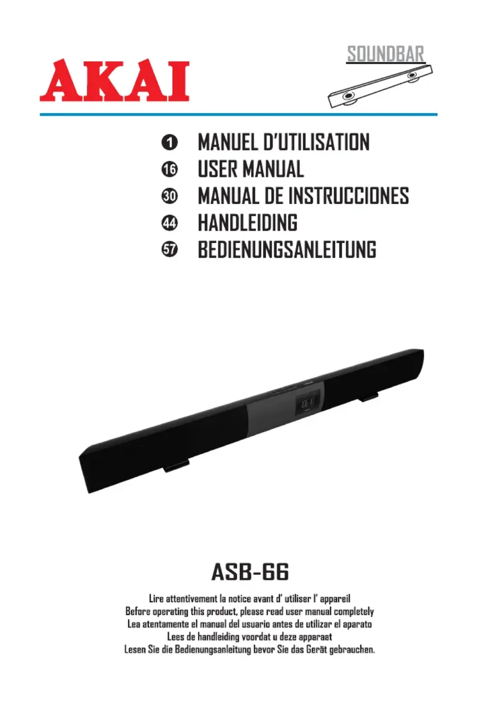 AVANT DE COMMENCER Merci d'avoir acheté notre AKAI ASB-66 BARRE DE SON BLUETOOTH AVEC RADIO FM ENTREE CARTE MEMOIRE ET PORT USB.