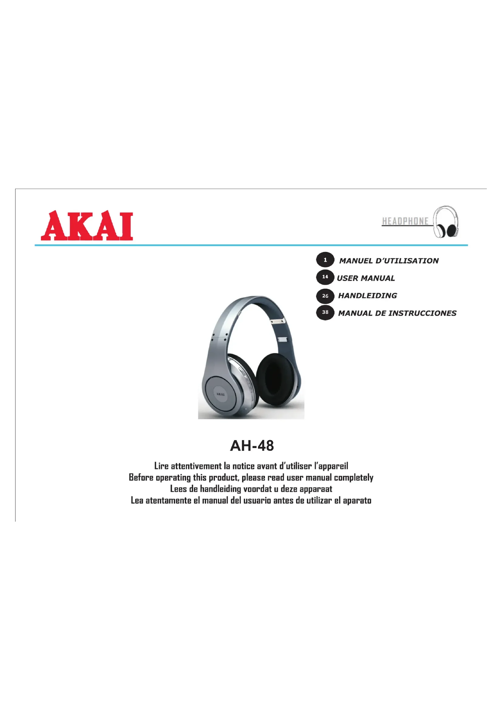 Merci d'avoir acheté notre casque avec Bluetooth stéréo A2DP multimédia AKAI AH-48. Ce produit est une garantie de qualité et de