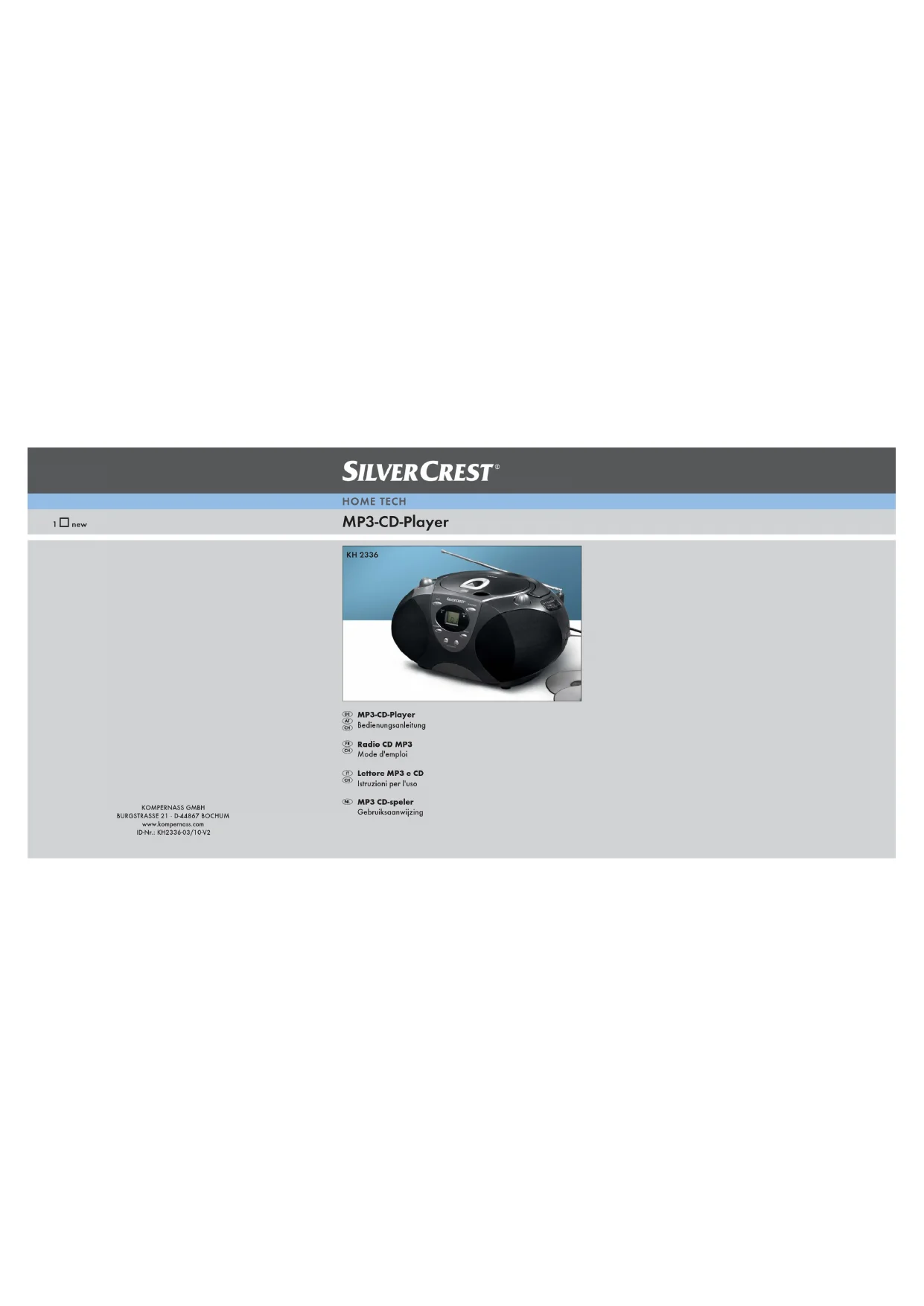 KH 2336 - Lecteur/enregistreur de cd SILVERCREST - Notice d'utilisation et mode d'emploi gratuit