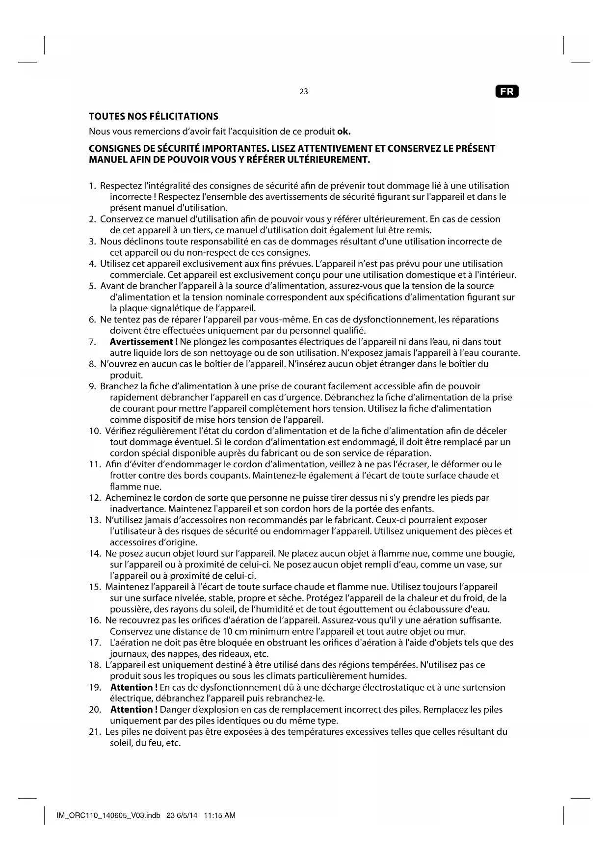 Retrouvez gratuitement la notice de l'appareil ORC 110 OK au format PDF.