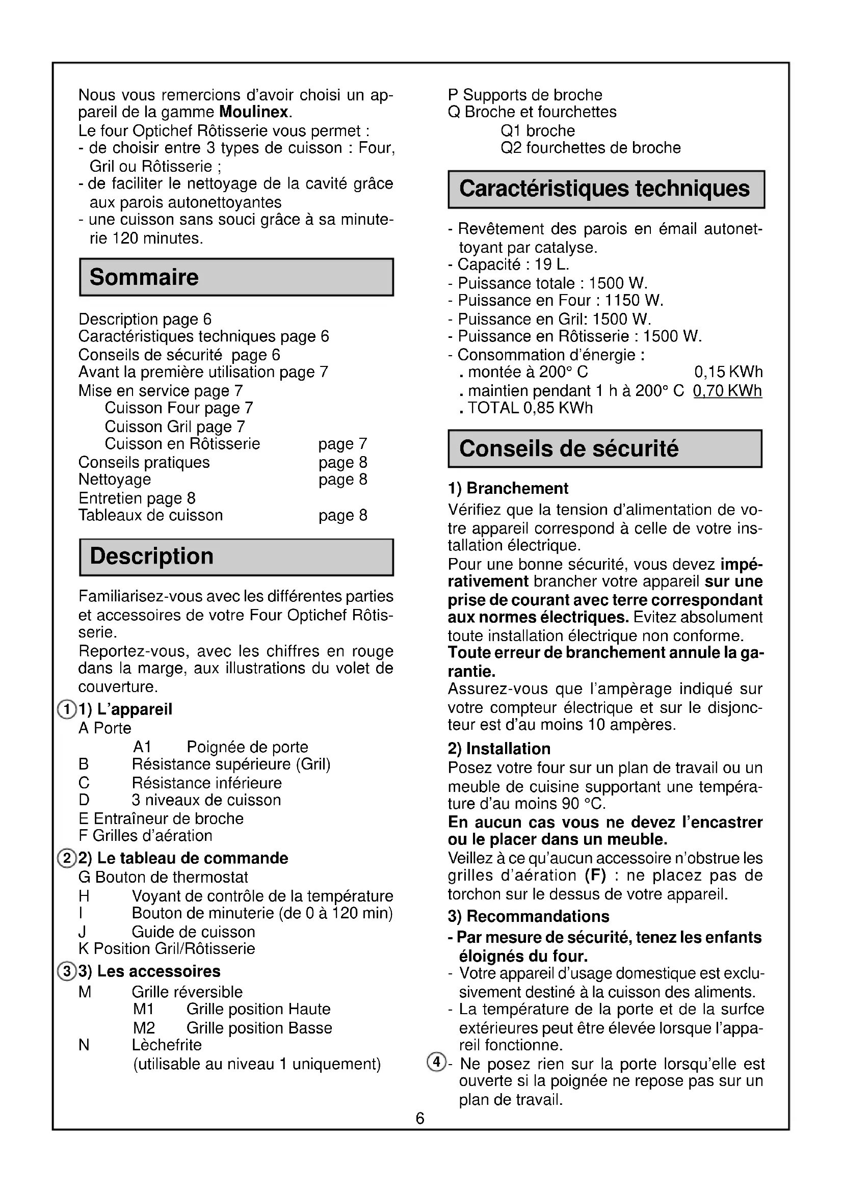 Thank you for choosing this Moulinex Optichef Rotisserie Oven. The Optichef Oven allows you: