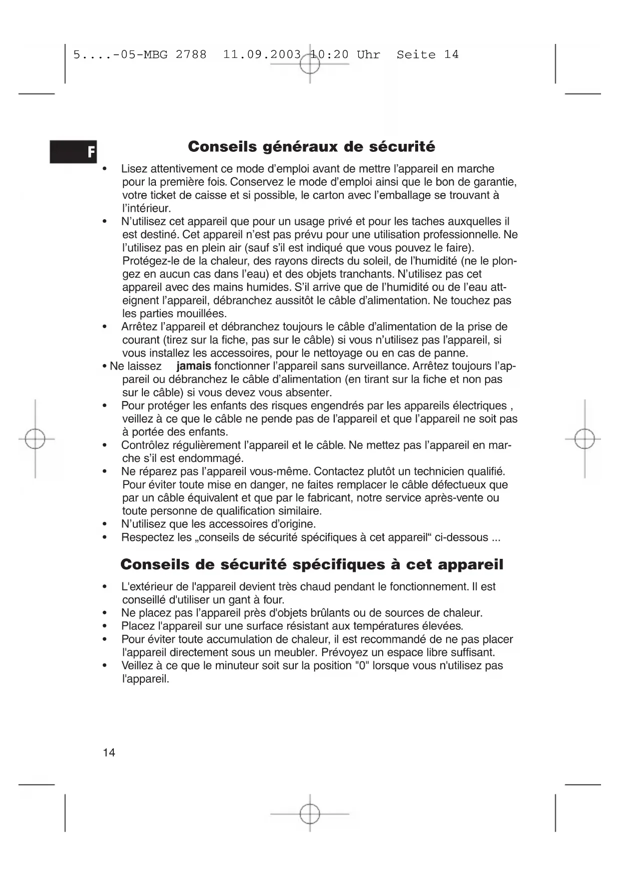• N'utilisez que les accessoires d'origine. - Respectez les „conseils de sécurité spécifiques à cet appareil“ ci-dessous ...
