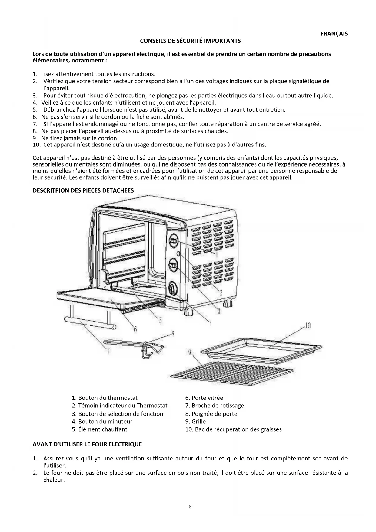 AVANT D'UTILISER LE FOUR ELECTRIQUE