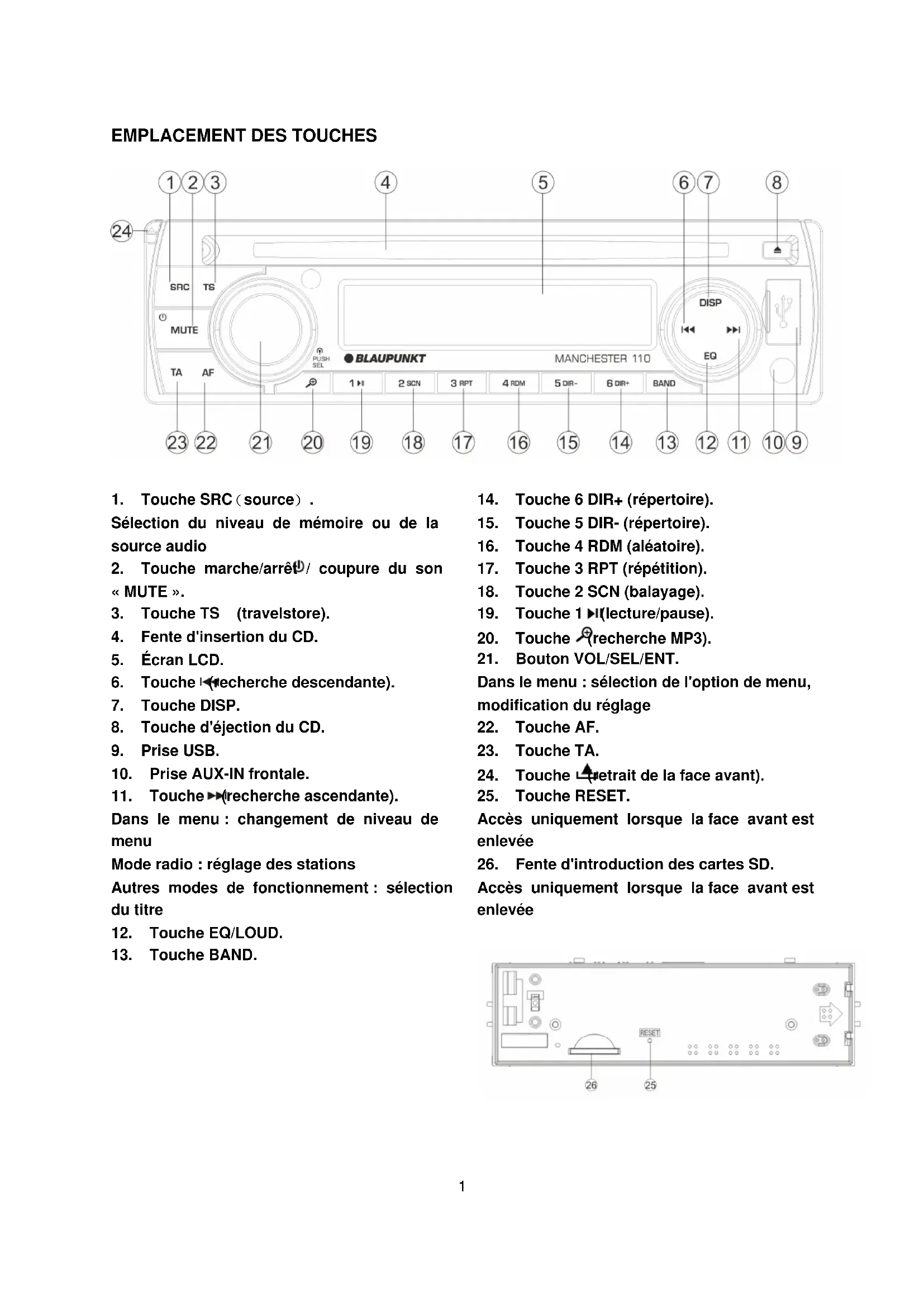 Manchester 110 - Autoradio BLAUPUNKT - Notice d'utilisation et mode d'emploi gratuit