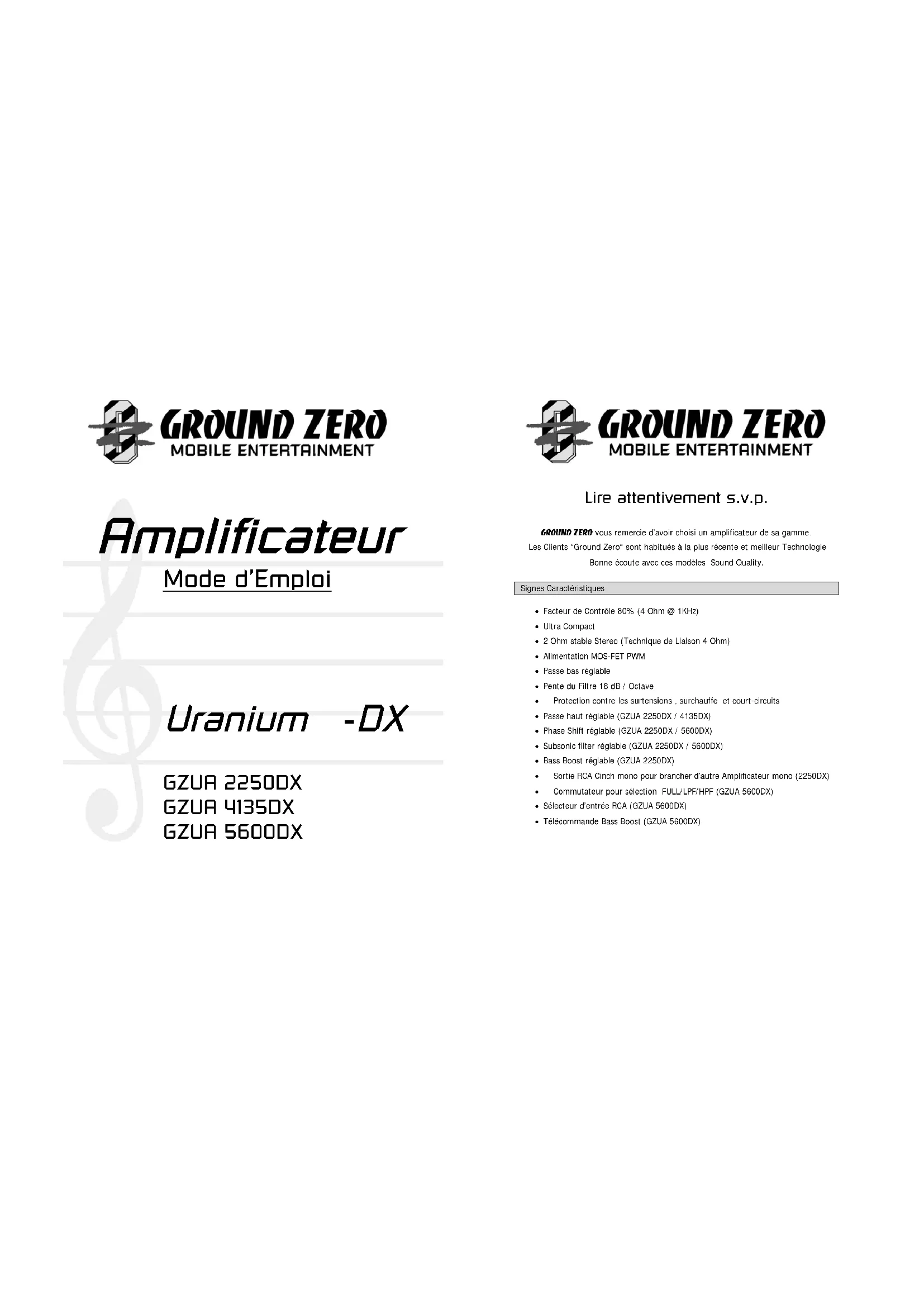 MODE D'EMPLOI GZUA 5600DX Ground Zero