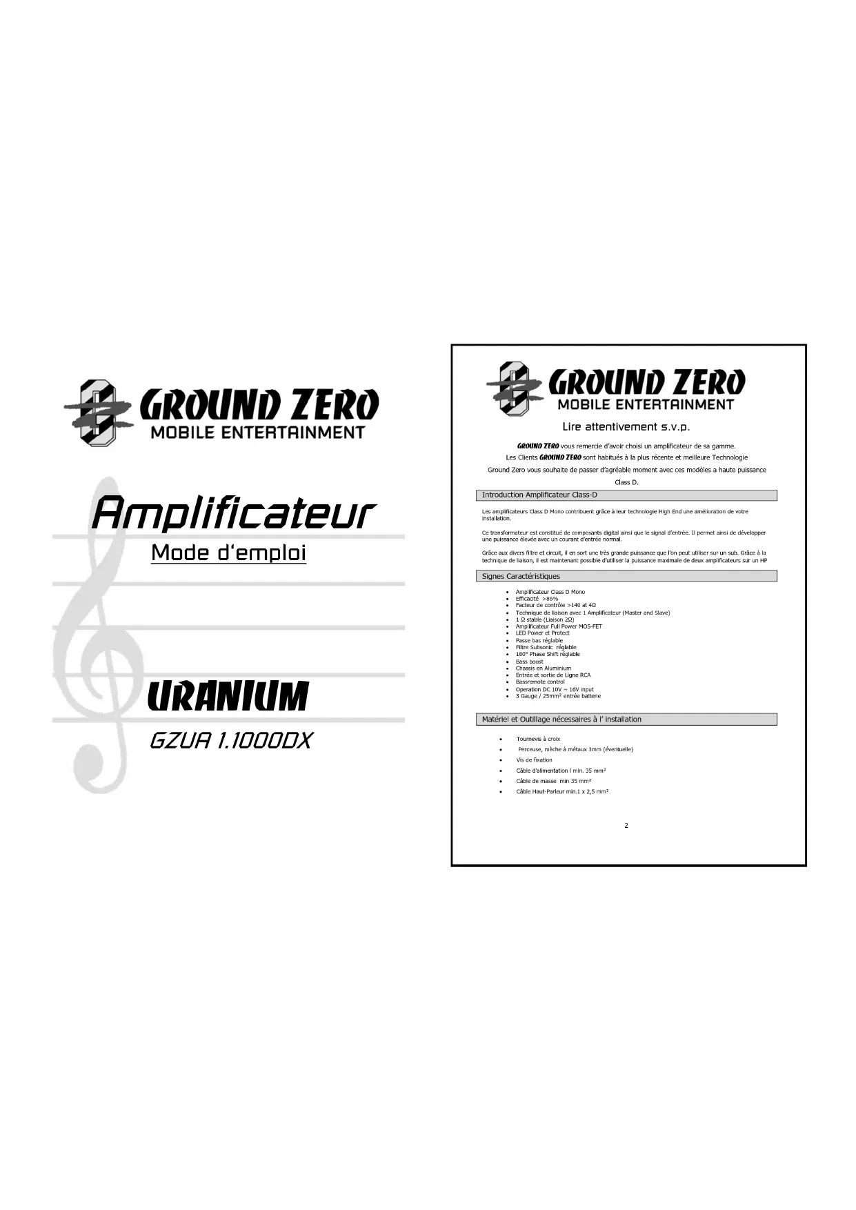 MODE D'EMPLOI GZUA 1.1000DX Ground Zero