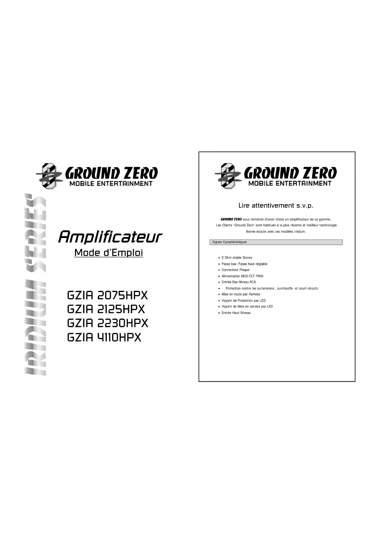 GROUND ZERO vous remercie d'avoir choisi un amplificateur de sa gamme.