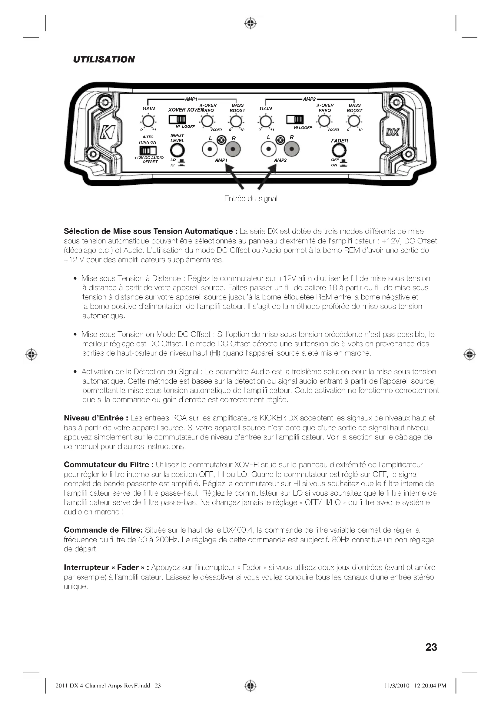 MODE D'EMPLOI DX400.4 KICKER
