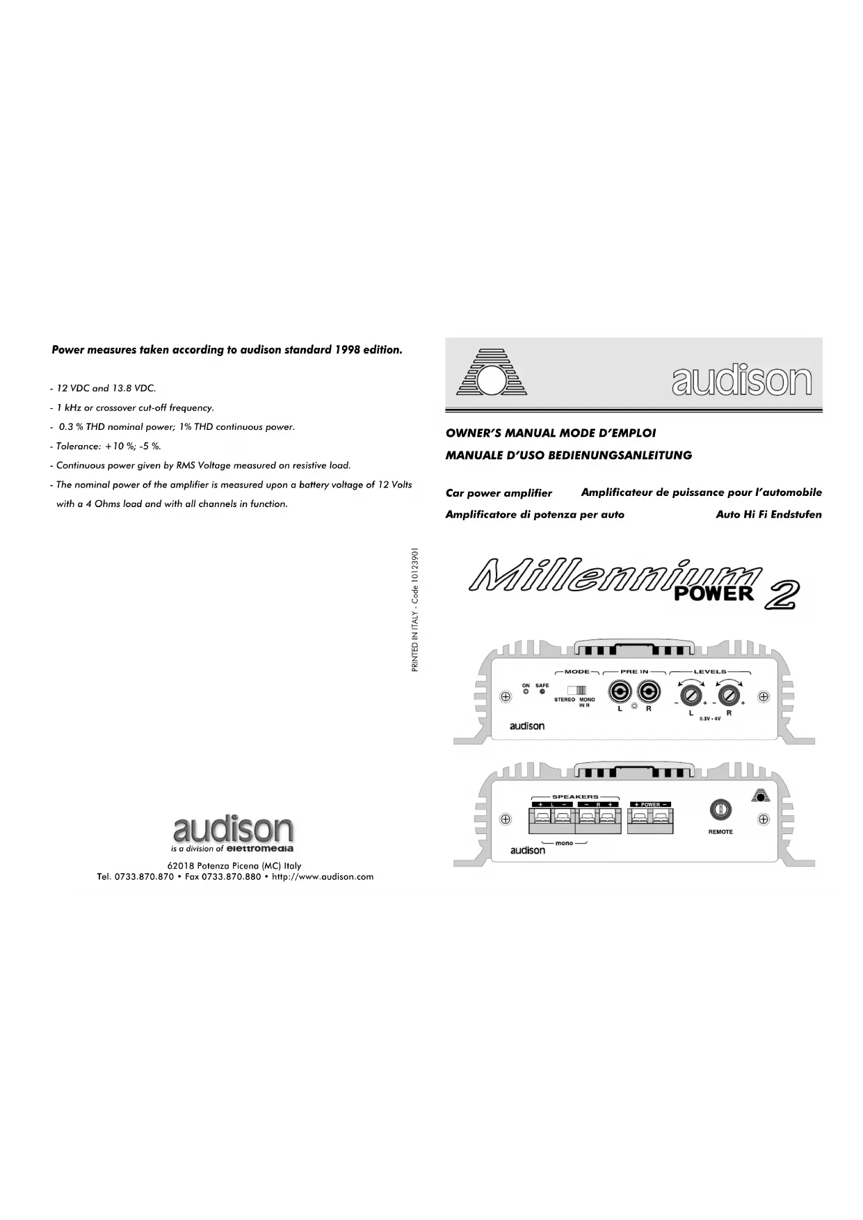 Retrouvez gratuitement la notice de l'appareil Power 2 Millennium AUDISON au format PDF.