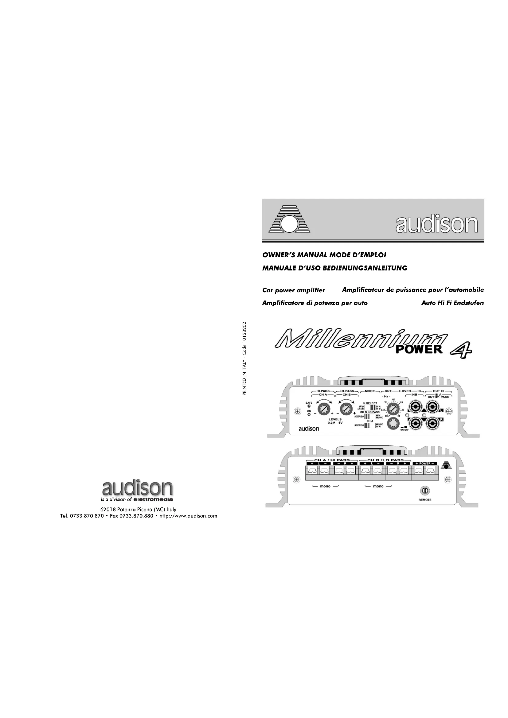 Retrouvez gratuitement la notice de l'appareil Power 4 Millennium AUDISON au format PDF.
