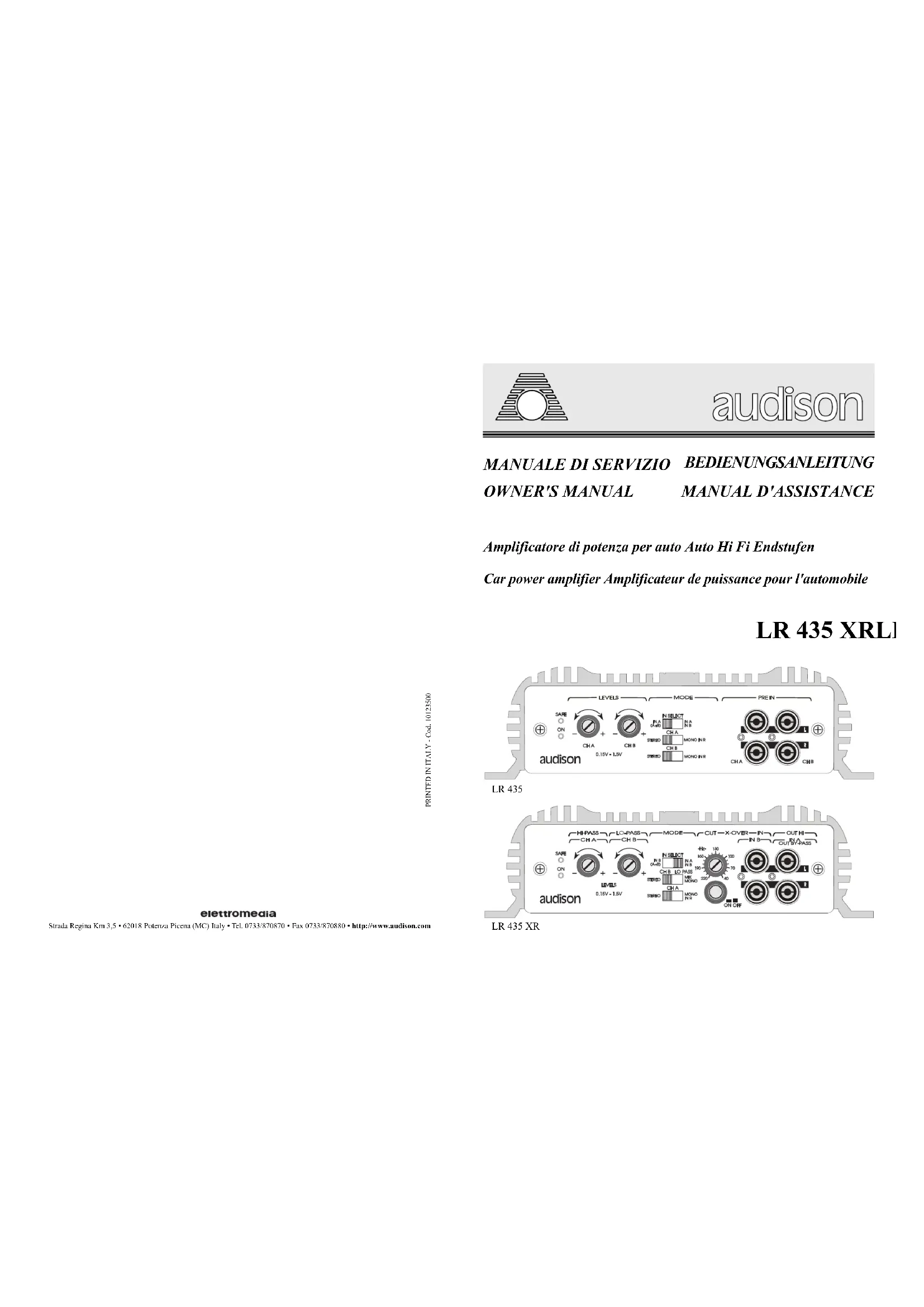 Strada Regina Km 3,5-62018 Polenza Picena (MC) Italy · Tel. 0733/870870 · Fax 0733/870880 · http://www.audison.com