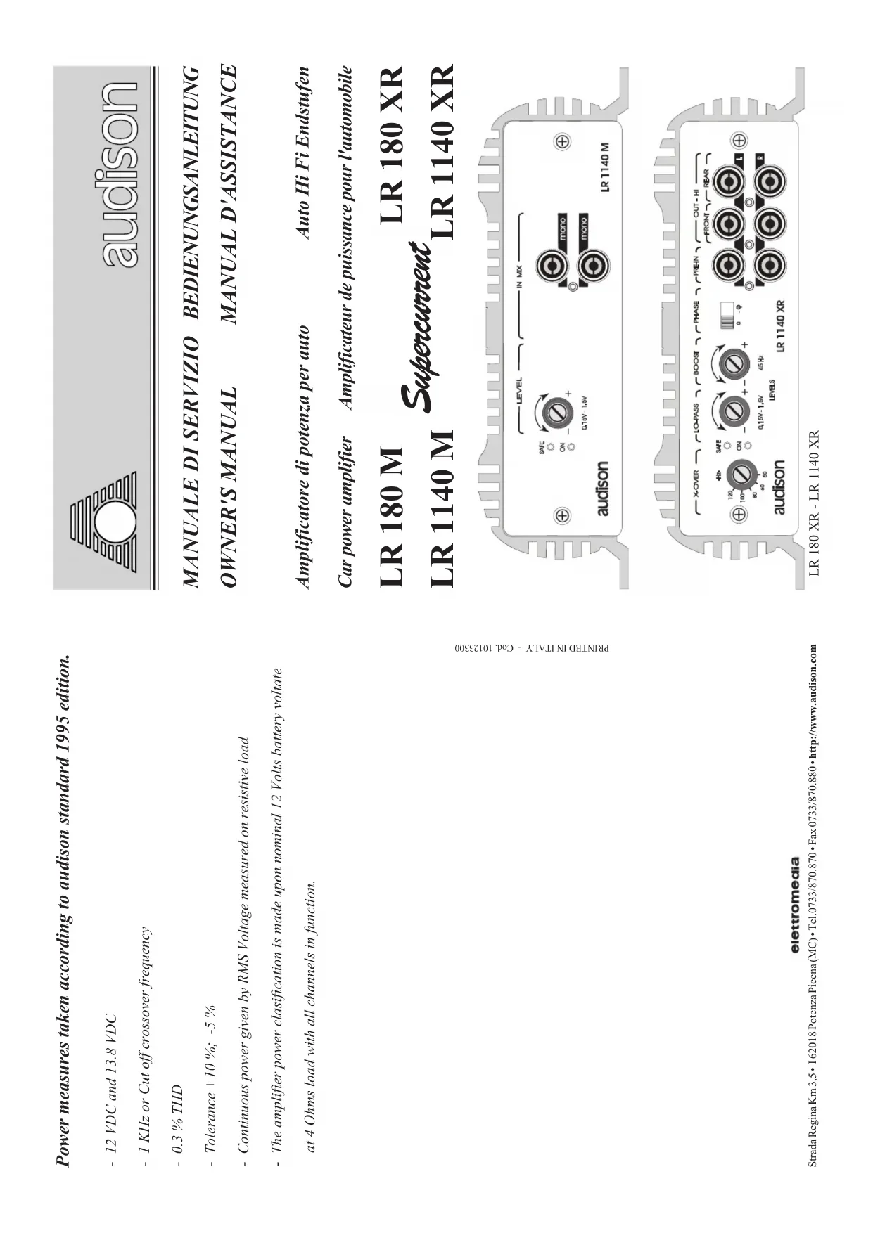 Retrouvez gratuitement la notice de l'appareil LR 180 XR AUDISON au format PDF.