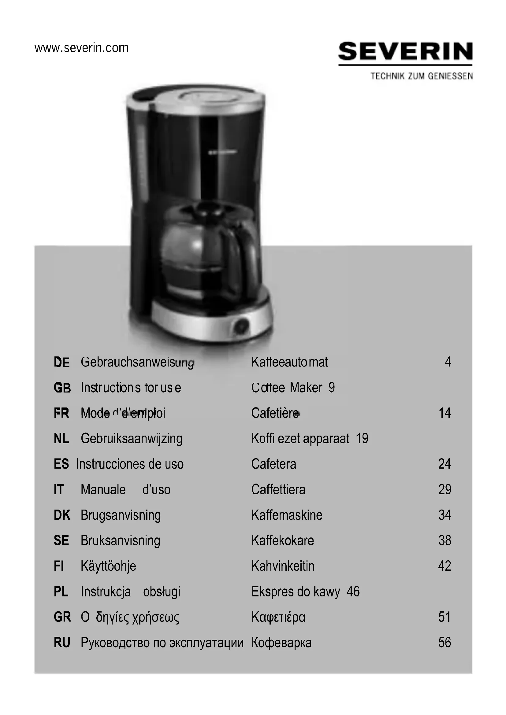 KA 4497 - Machine à café SEVERIN - Notice d'utilisation et mode d'emploi gratuit