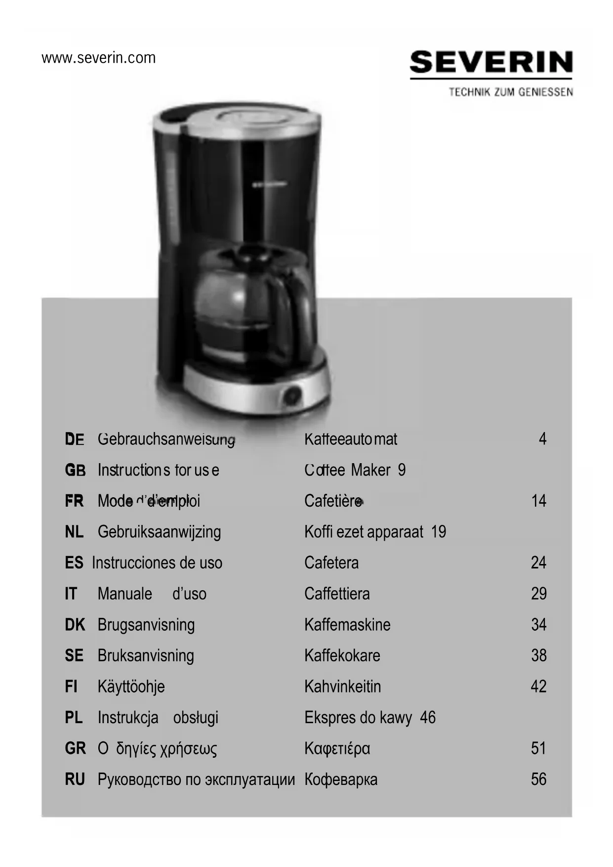 Retrouvez gratuitement la notice de l'appareil KA 4496 SEVERIN au format PDF.