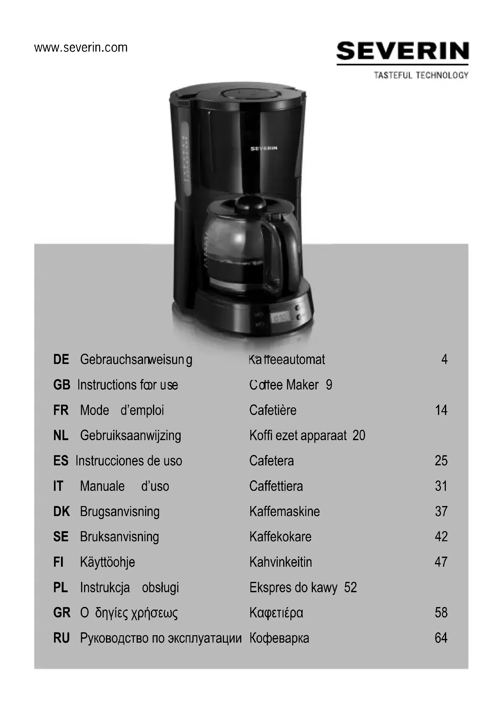 Retrouvez gratuitement la notice de l'appareil KA 4192 SEVERIN au format PDF.