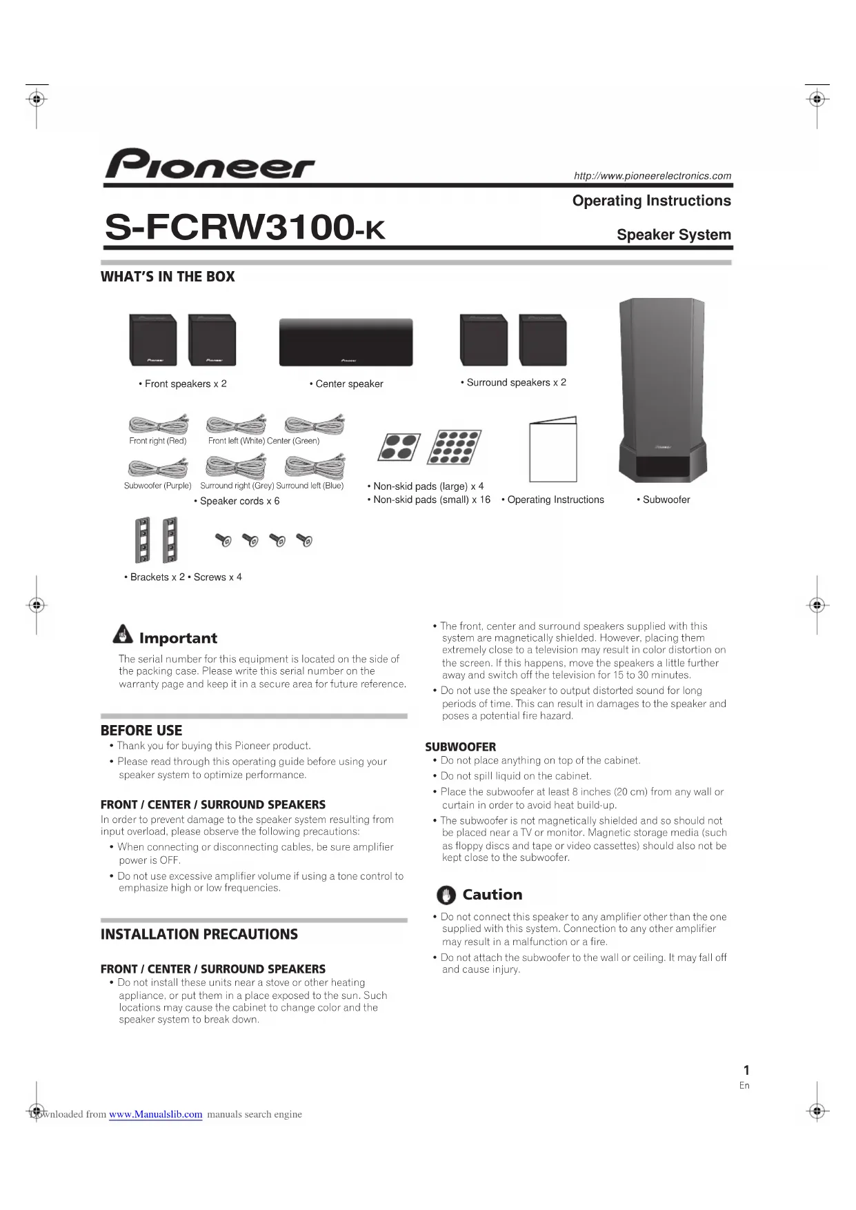 SFCRW3100K - Haut-parleur PIONEER - Notice d'utilisation et mode d'emploi gratuit