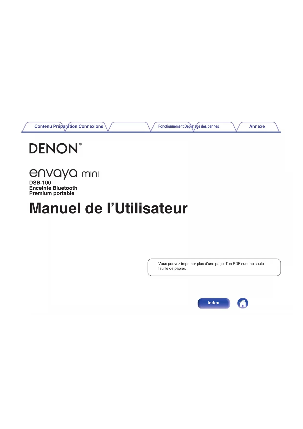 Retrouvez gratuitement la notice de l'appareil Envaya Mini DSB100 DENON au format PDF.