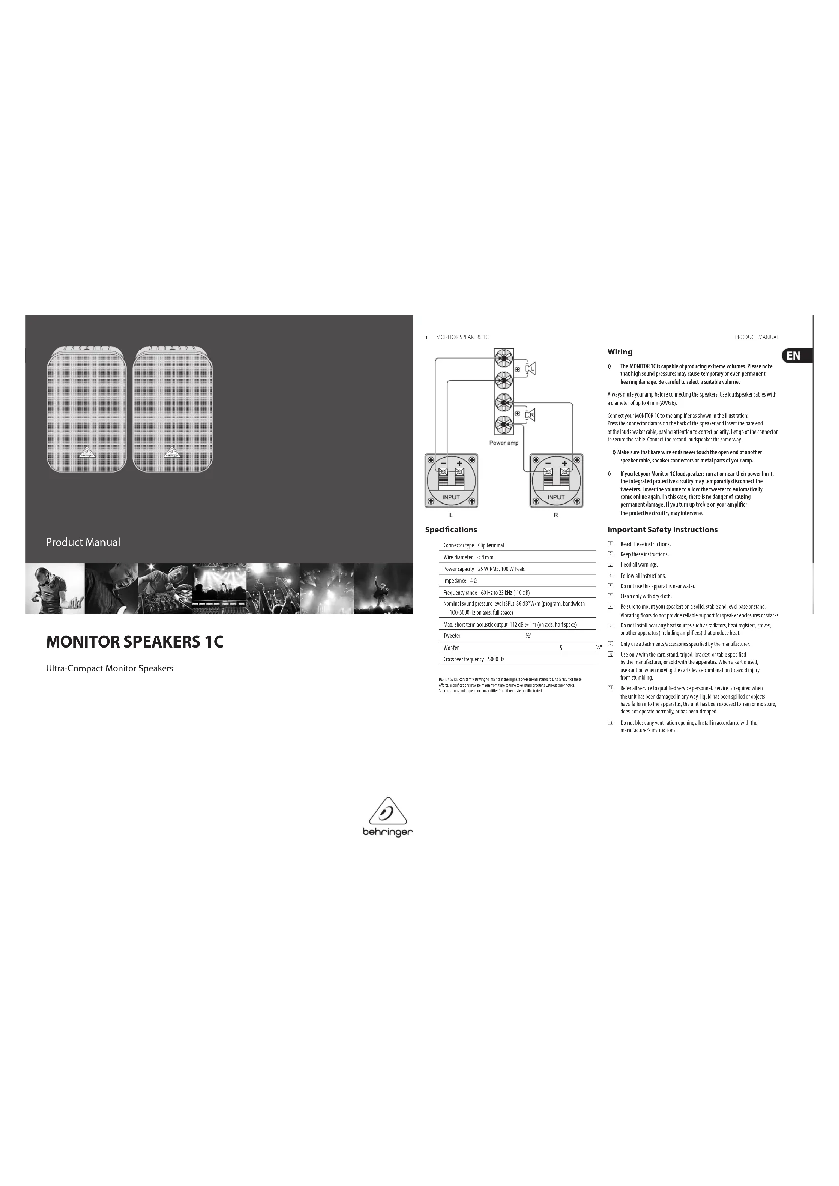 Retrouvez gratuitement la notice de l'appareil Monitor speakers 1C BEHRINGER au format PDF.