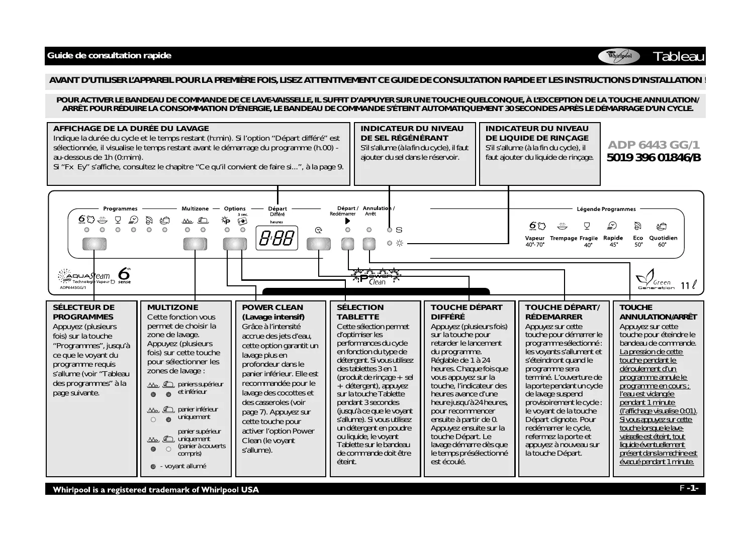 ADP 6443 GG/1 - TABLEAU DE PROGRAMMES - Lave-vaisselle WHIRLPOOL - Notice d'utilisation et mode d'emploi gratuit