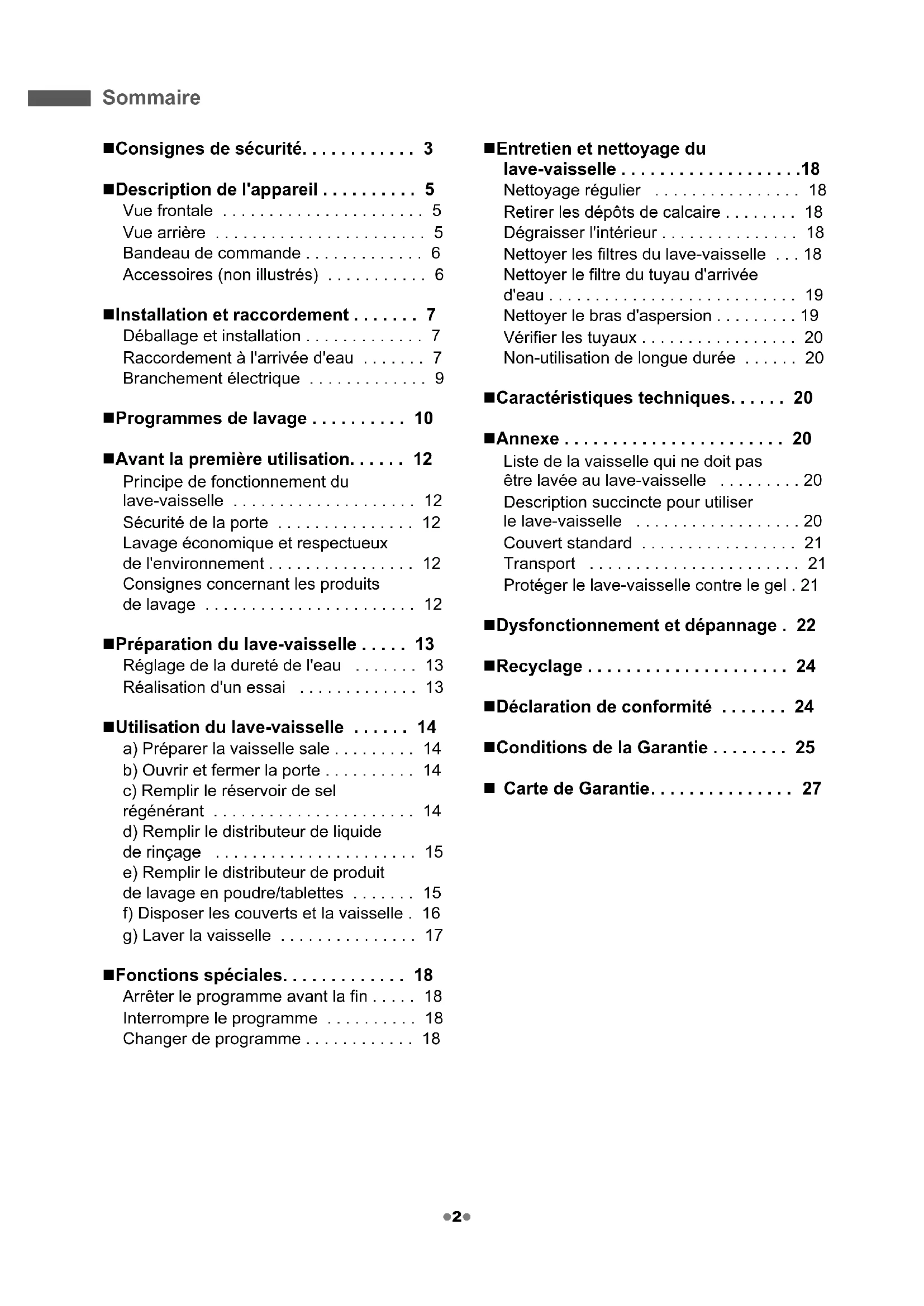 - Vous trouvrez une liste de la vaissele inadaptée au lave-vaissele en page 20.