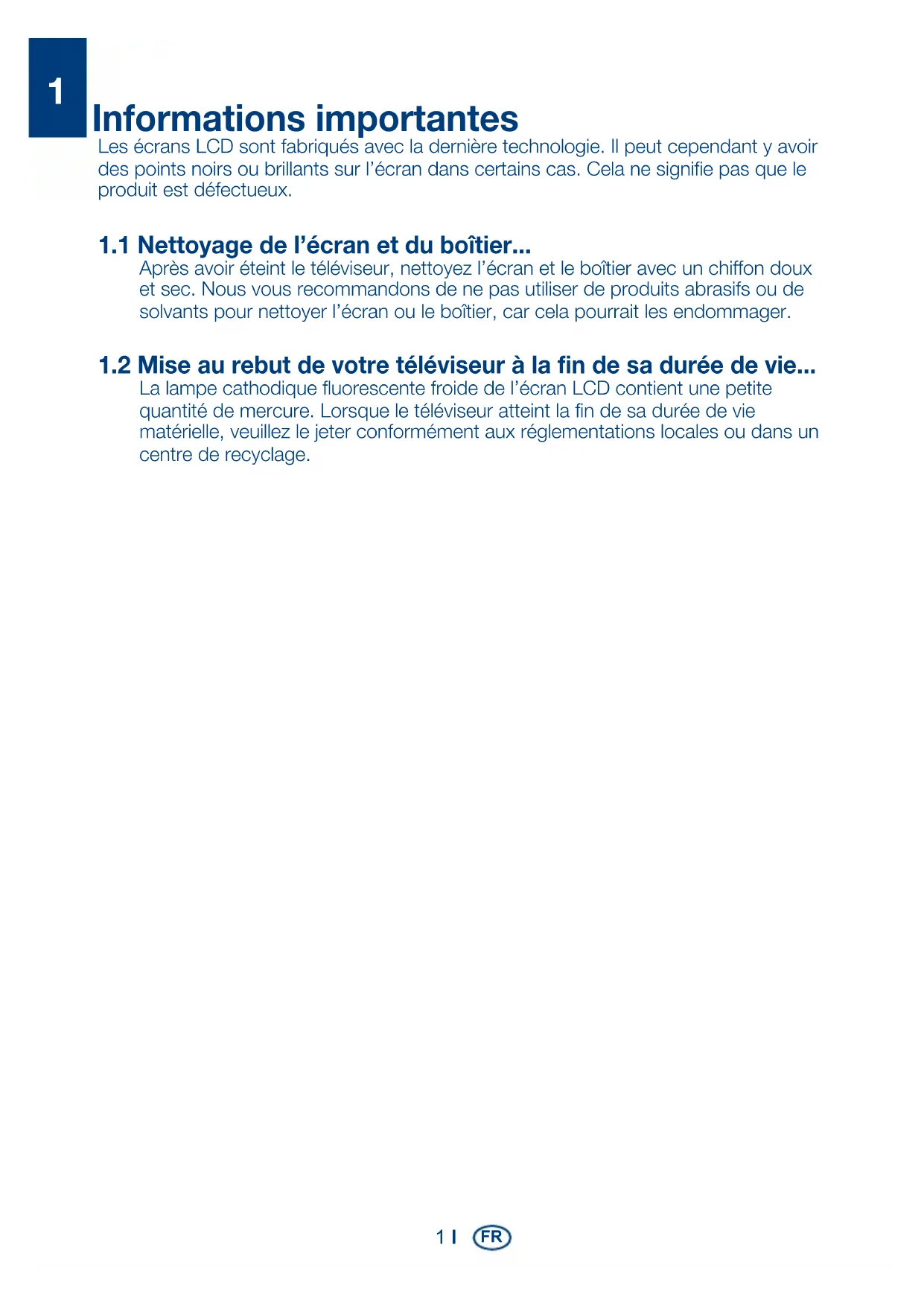 1.2 Mise au rebut de votre téléviseur à la fin de sa durée de vie... 1