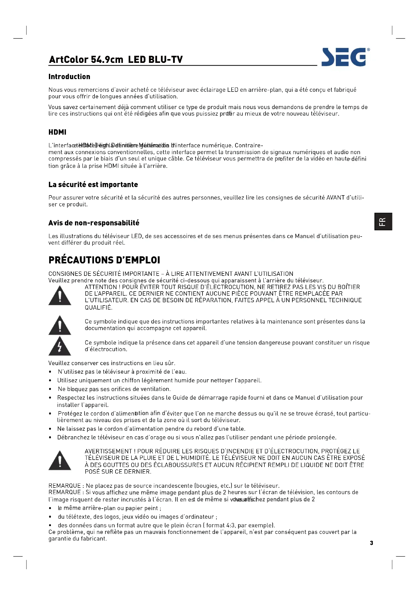 ArtColor - Téléviseur SEG - Notice d'utilisation et mode d'emploi gratuit