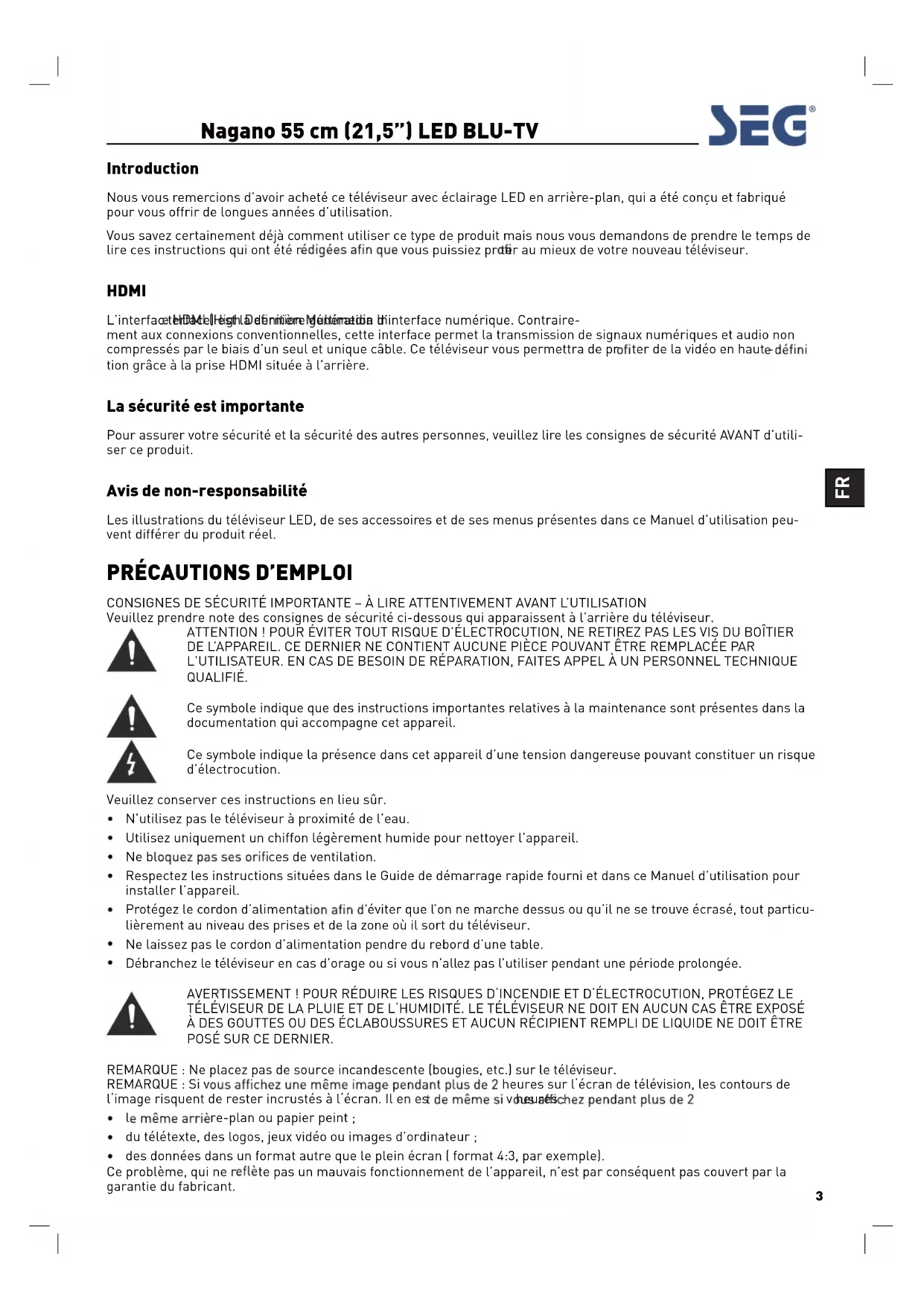 Téléchargez la notice de votre Téléviseur au format PDF gratuitement ! Retrouvez votre notice Nagano - SEG et reprennez votre appareil électronique en main. Sur cette page sont publiés tous les documents nécessaires à l'utilisation de votre appareil Nagano de la marque SEG.