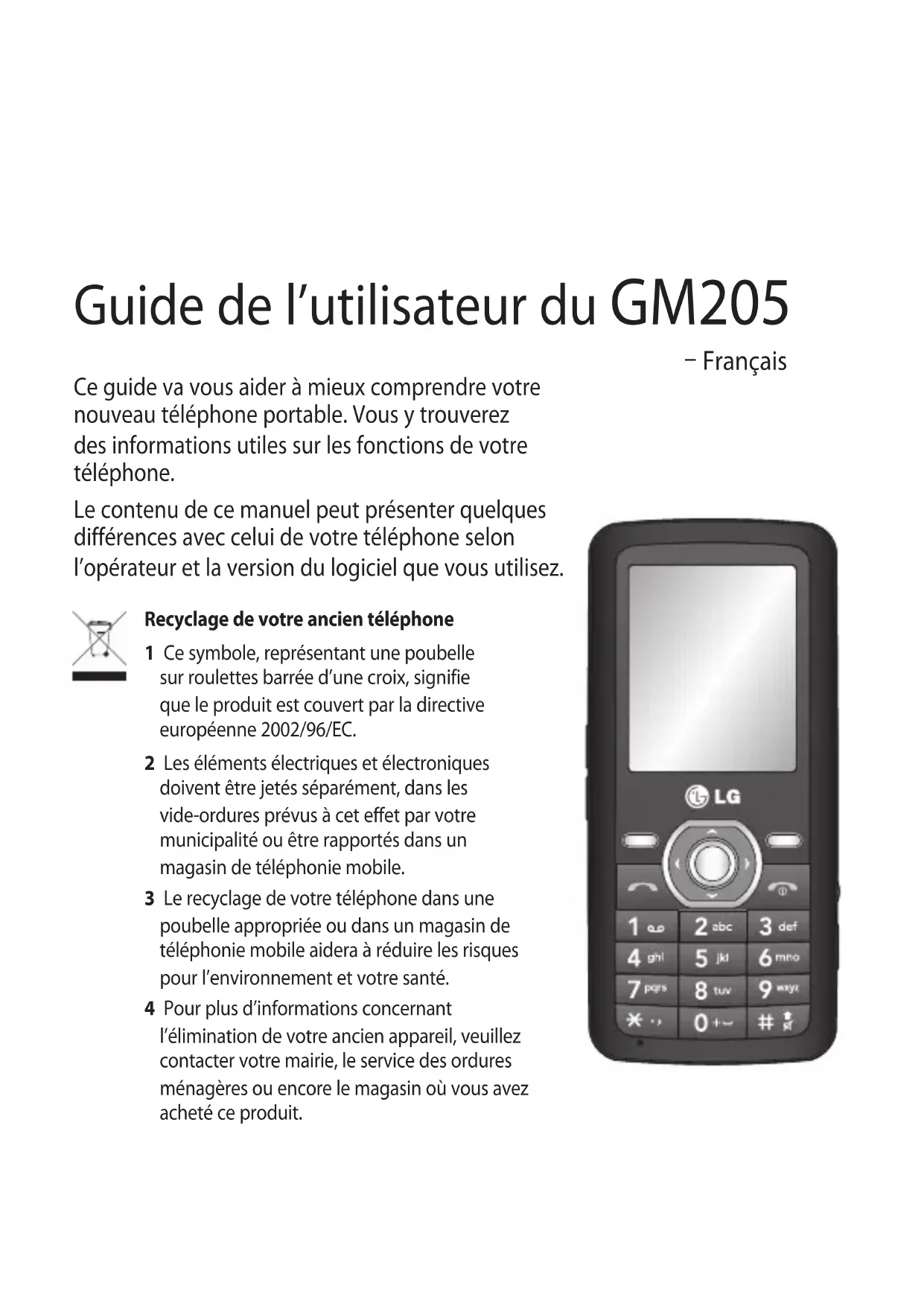 GM205 - Téléphone mobile LG - Notice d'utilisation et mode d'emploi gratuit