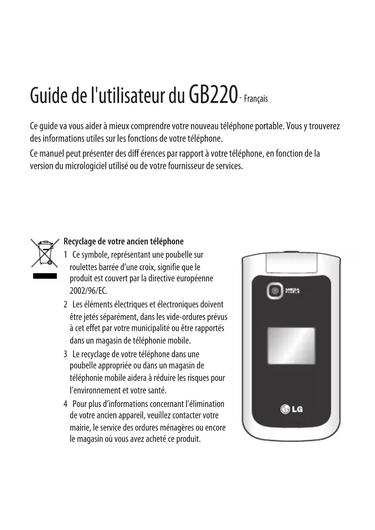 GB220 - Téléphone mobile LG - Notice d'utilisation et mode d'emploi gratuit