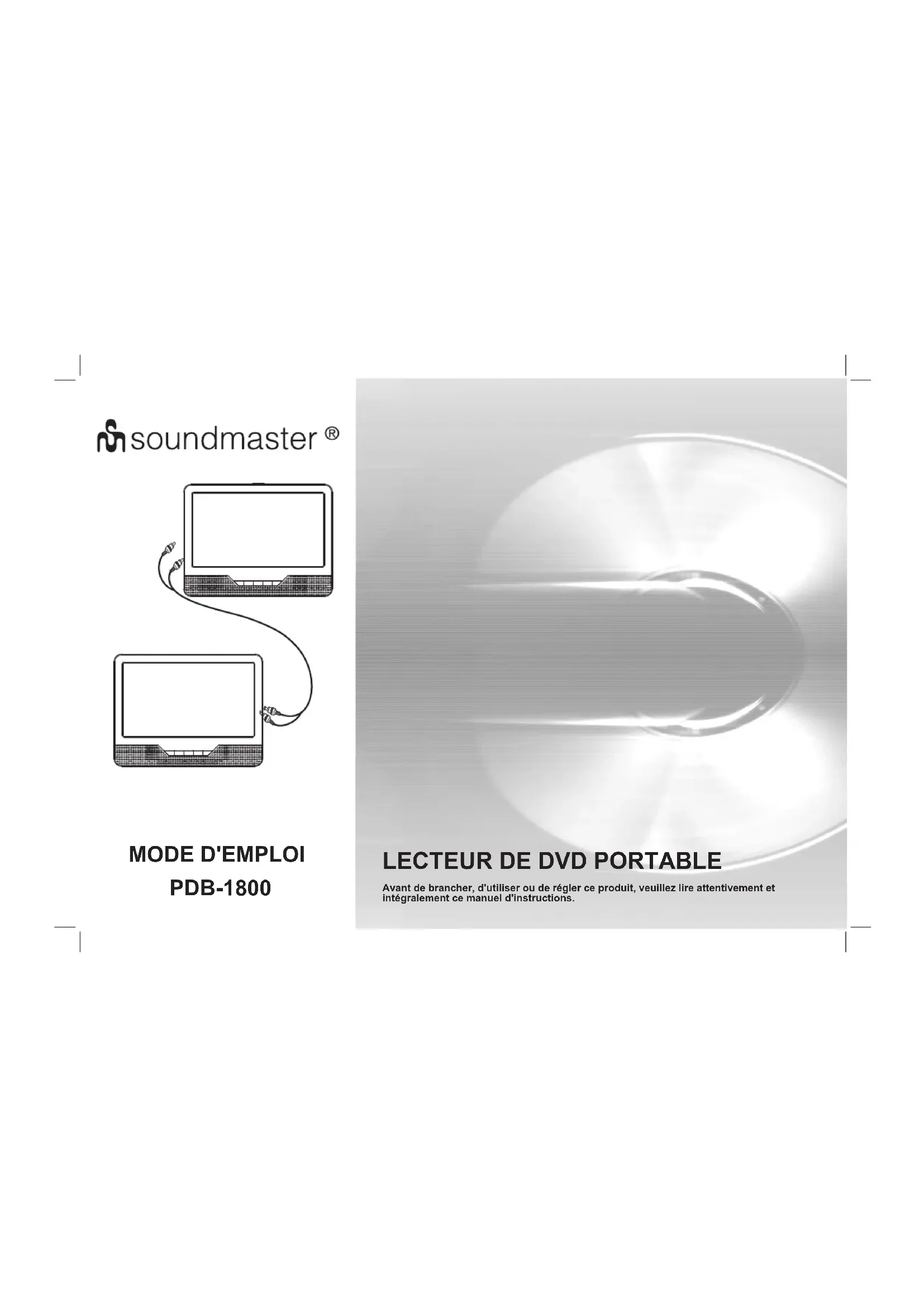 PDB1800 - Lecteur DVD portable Soundmaster - Notice d'utilisation et mode d'emploi gratuit