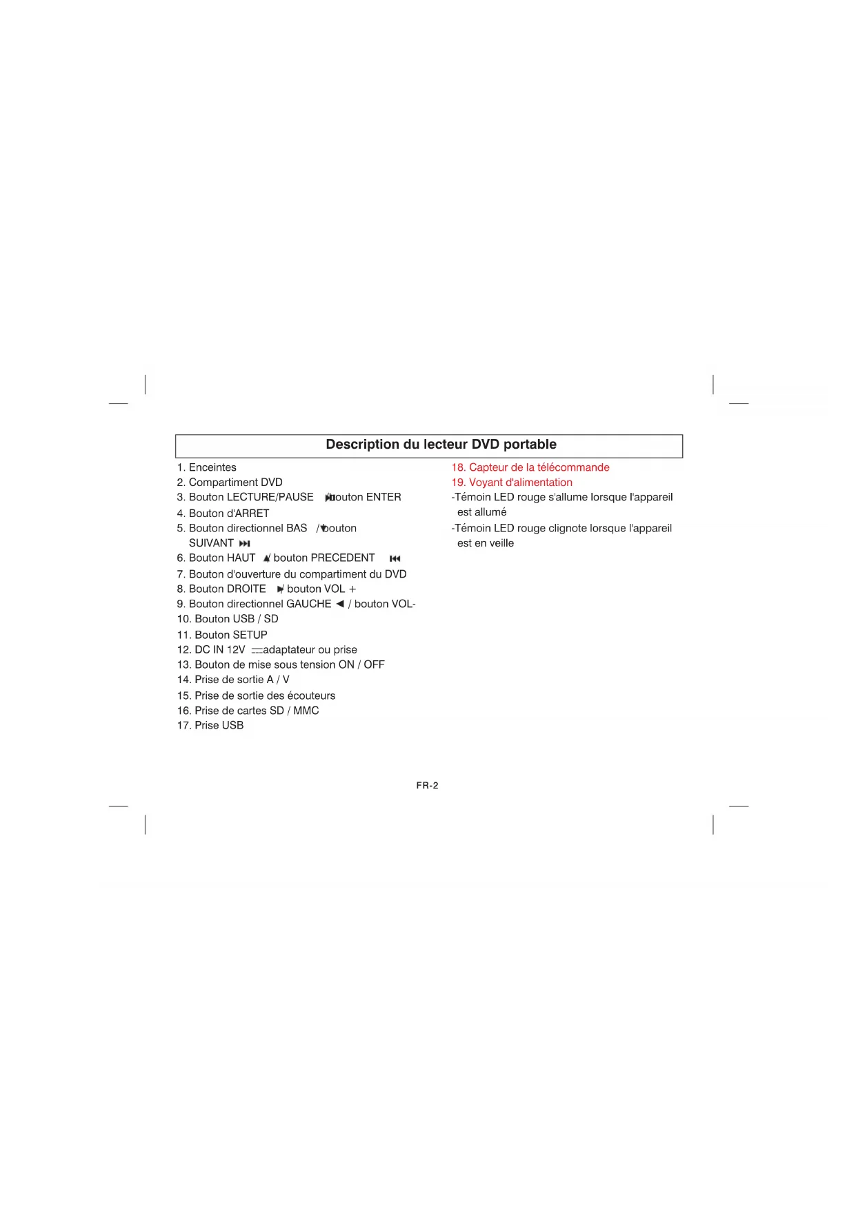 18 19FR-2 Description du lecteur DVD portable