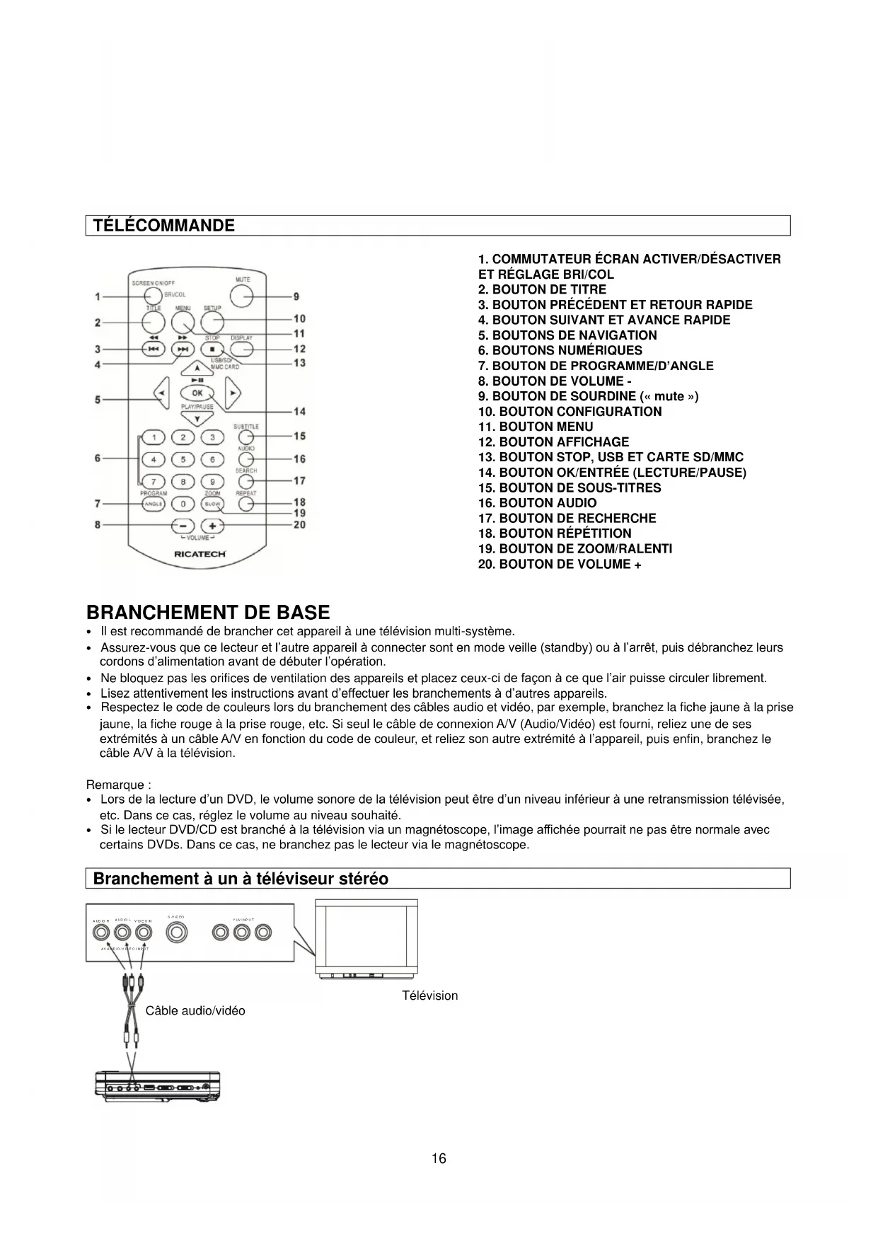 Retrouvez gratuitement la notice de l'appareil RDPDVD900 Ricatech au format PDF.
