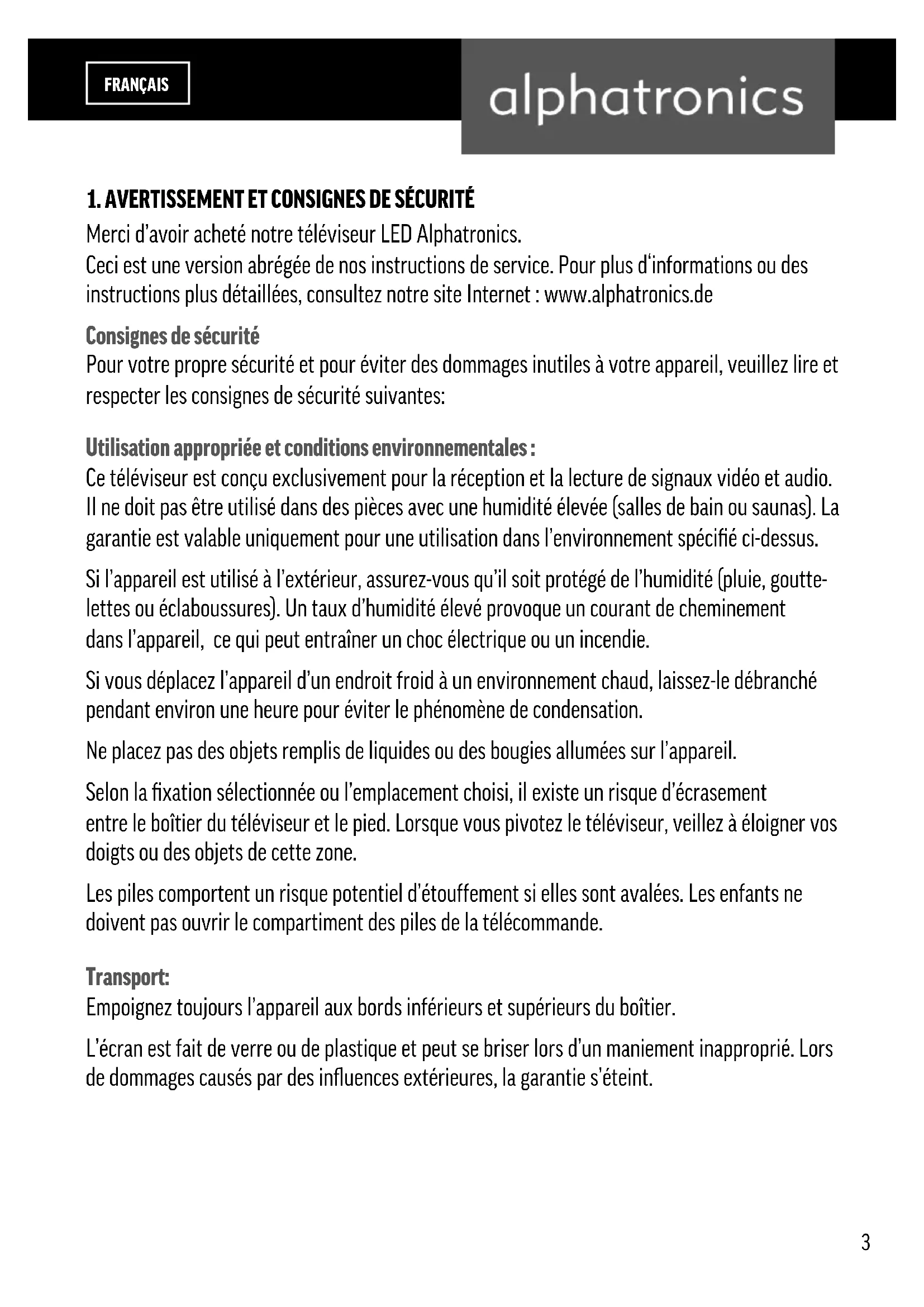 Merci d'avoir acheté notre téléviseur LED Alphatronics.