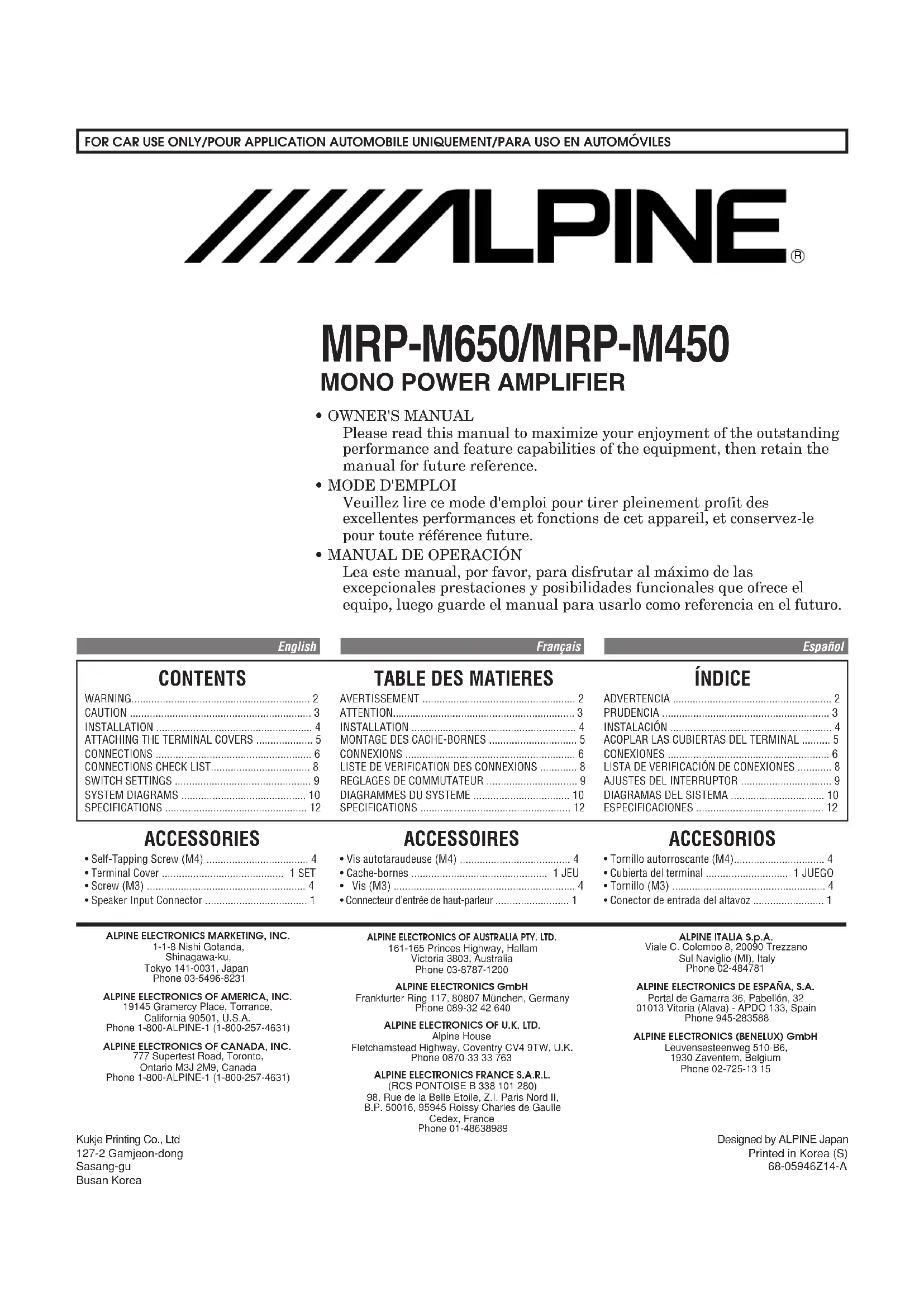 Retrouvez gratuitement la notice de l'appareil MRPM650 ALPINE au format PDF.