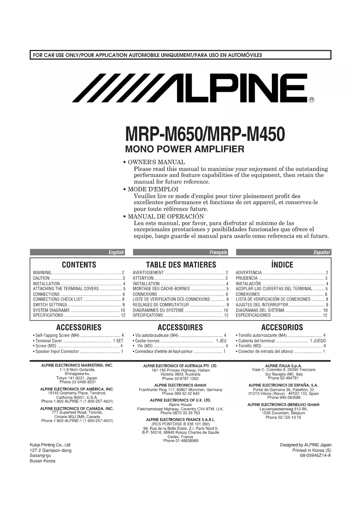 Retrouvez gratuitement la notice de l'appareil MRPM450 ALPINE au format PDF.