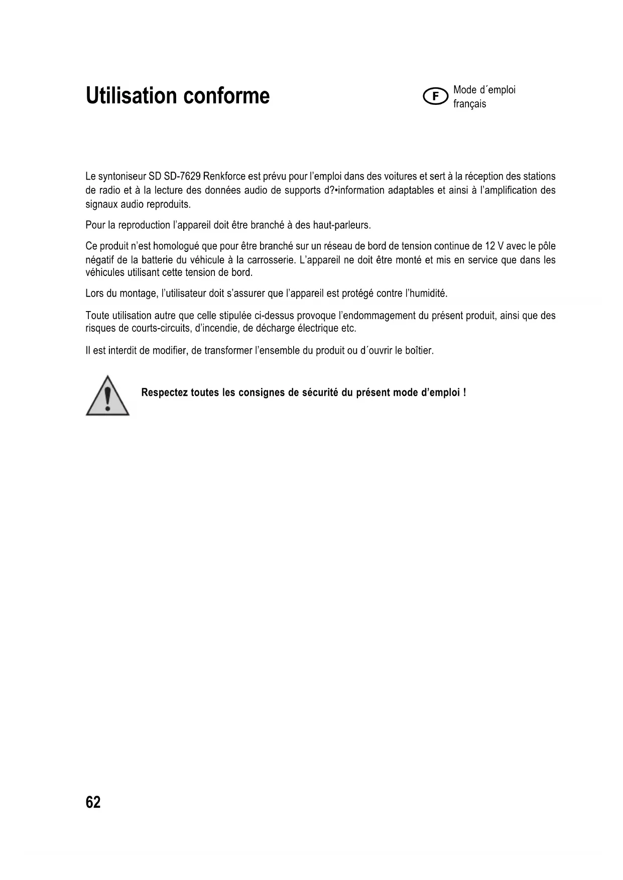 Utilisation conforme 62