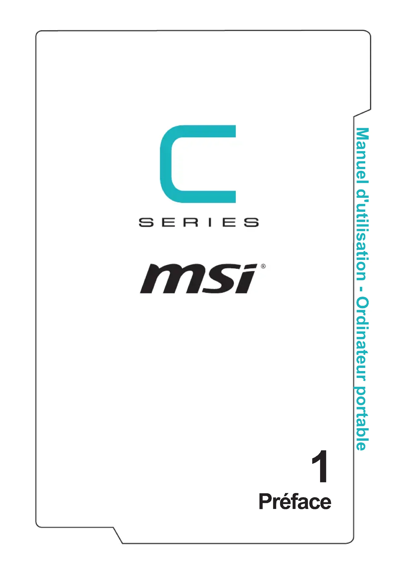 Taïwan: Pour une meilleure protection de l'environnement, les batteries usées doivent être ramassées séparément pour être recyclées ou éliminées d'une manière particulière. Etat de Californie, Etats-Unis : Les piles boutons peuvent contenir du perchlorate et nécessitent une manipulation particulière lors de leur recyclage ou de leur destruction dans l'état de Californie. Pour plus d'informations, rendez-vous sur la page : http://www.dtsc.ca.gov/ hazardouswaste/perchlorate/ Déclaration DEEE Union européenne : Selon la directive européenne DEEE, ou 2002/96/EC, relative aux déchets d'équipements électriques et électroniques et ayant pris effet le 13 août 2005, les produits électriques et électroniques ne peuvent plus être déposés dans les décharges municipales ni être mis à la poubelle, et les fabricants des équipements concernés sont obligés de récupérer ces produits lorsque ceux-ci atteignent leur fin de vie.1-7 Préface Réglementations relatives aux substances chimiques En conformité avec les règlements concernant l’utilisation de substances chimiques, tels que le règlement européen REACH (Règlement CE N° 1907/2006 du Parlement européen et du Conseil), MSI fournit toutes les informations quant à leur utilisation dans ses produits sur la page : http://www.msi.com/html/popup/csr/evmtprtt_pcm.html Mise à niveau et garantie Veuillez noter que certains composants, tel que les cartes de mémoire, disque dur, SSD, ODD et la carte combo bluetooth/WiFi, préinstallés dans le produit peuvent être mise à niveau ou remplacés à la demande de l'utilisateur selon les modèles que l'utilisateur a achetés. Pour toute autre information sur le produit acheté, veuillez contacter votre fournisseur local. N’essayez pas de mettre à niveau ou de remplacer un composant du produit si vous ne savez pas l'emplacement des composants ou le montage/ démontage. Cela risquerait d'endommager le produit. Il est recommandé de contacter un fournisseur ou un service d’entretien autorisé pour effectuer une mise à niveau ou un remplacement. Achat des éléments remplaçables Veuillez noter que l’achat de pièces remplaçables (ou compatibles) du produit acheté dans certains pays ou certaines régions doivent être mises à disposition par le fabricant au moins 5 ans après l’arrêt de la fabrication du produit, compte tenu des dispositions réglementaires publiées à l’époque. Pour les informations détaillées concernant l’achat de pièces détachées, veuillez contacter le fabricant par le biais de http://www.msi.com/support/. Avis relatif au lecteur optique ATTENTION : Cet appareil contient un système laser considéré comme un produit laser de classe 1. Pour vous assurer une utilisation adéquate du lecteur optique, veuillez lire attentivement les instructions et conserver ce manuel de façon à pouvoir y faire référence ultérieurement. En cas de problème avec ce modèle, veuillez contacter le centre de service agréé le plus proche. Pour éviter toute exposition directe au faisceau laser, n’essayez pas de démonter le boîtier.1-8 Manuel d'utilisation - Ordinateur portable Instructions de sécurité Veuillez lire attentivement les instructions de sécurité et prendre en compte tous les avertissements et toutes les précautions d'usage se trouvant sur l’appareil ou sur le mode d’emploi. Conservez cet appareil à l’abri de l’humidité et des températures élevées. Posez l’appareil sur une surface stable avant de l'utiliser. Ne couvrez pas les ventilateurs de cet ordinateur portable pour éviter à l'appareil de surchauffer.
