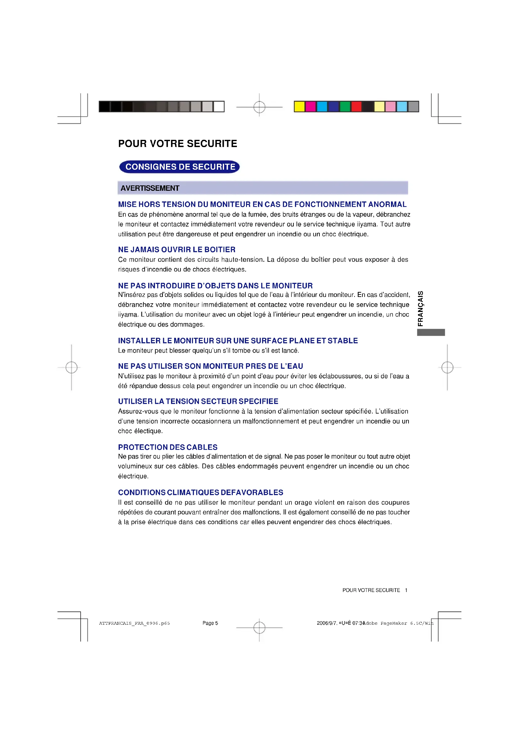 Pour une meilleure protection de l'environnement svp ne disposez pas votre moniteur. Veuillez visiter notre site Web : www.iiyama.com/recycle pour la réutilisation de moniteur. PLE2200WS-Fra-M015B01.p65 2006/09/26, 13:0823FRANÇAIS