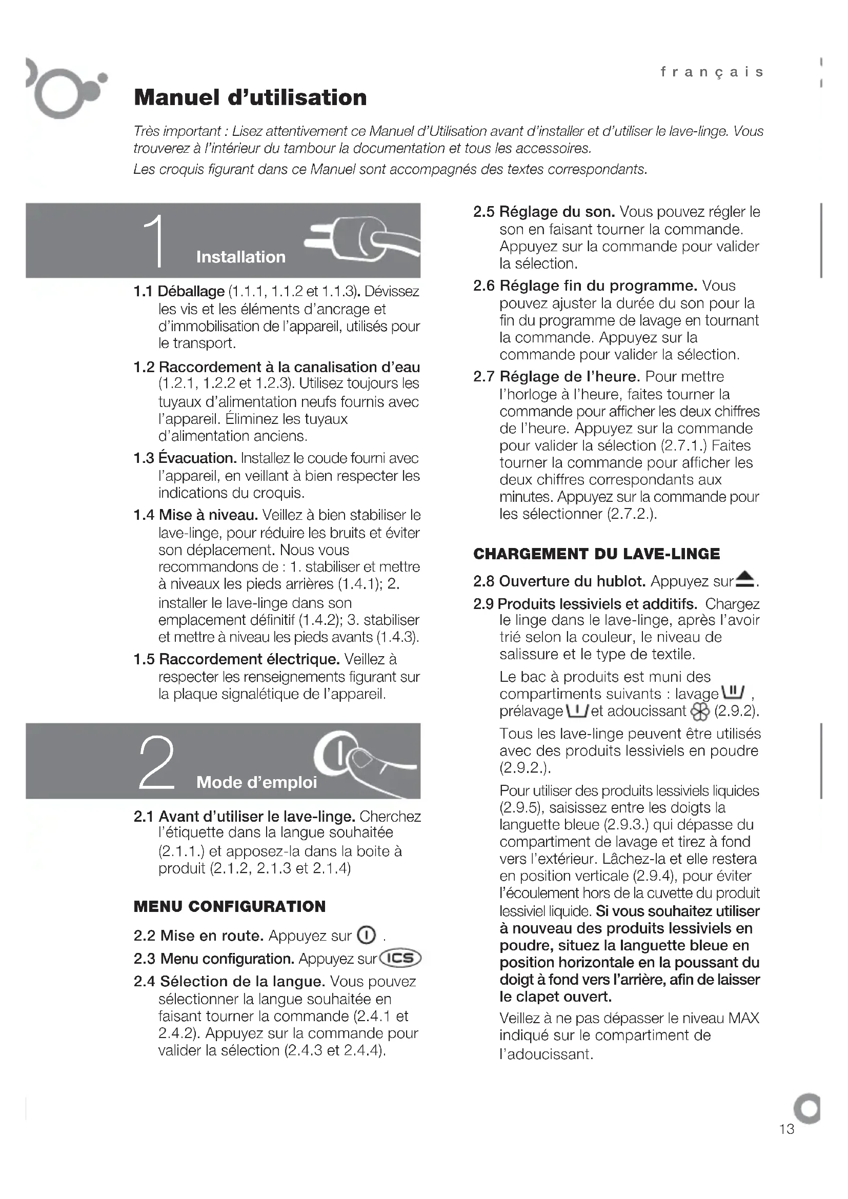 2.1 Avant d’utiliser le lave-linge. Cherchez