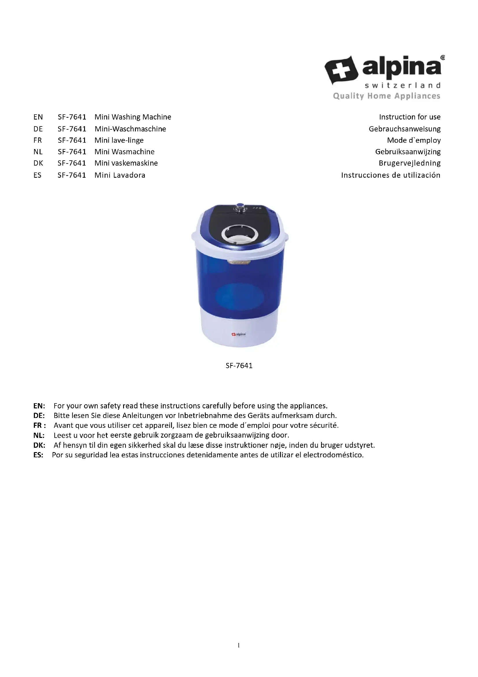 Retrouvez gratuitement la notice de l'appareil SF7641 ALPINA au format PDF.