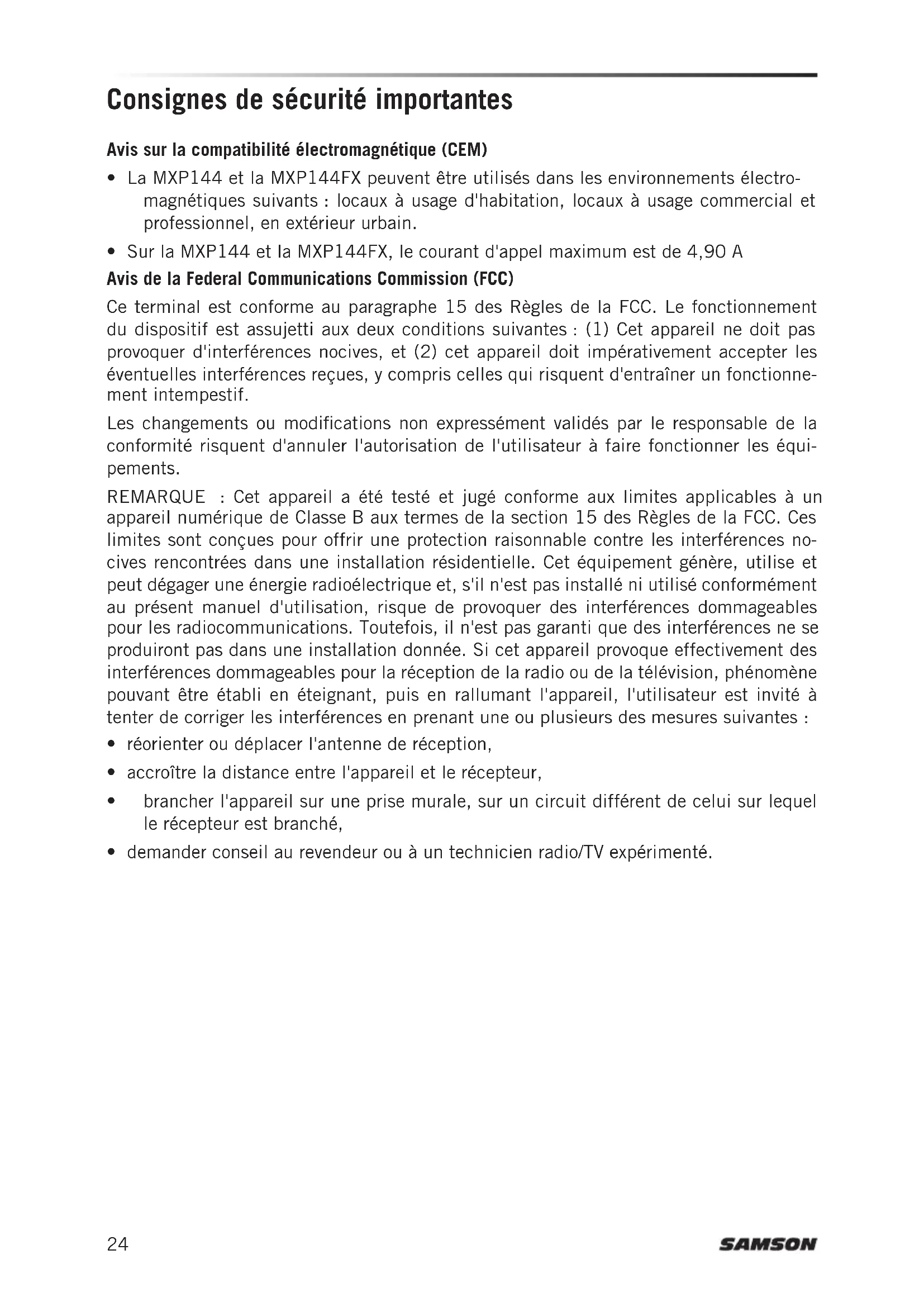 MODE D'EMPLOI MixPad MXP144FX SAMSON