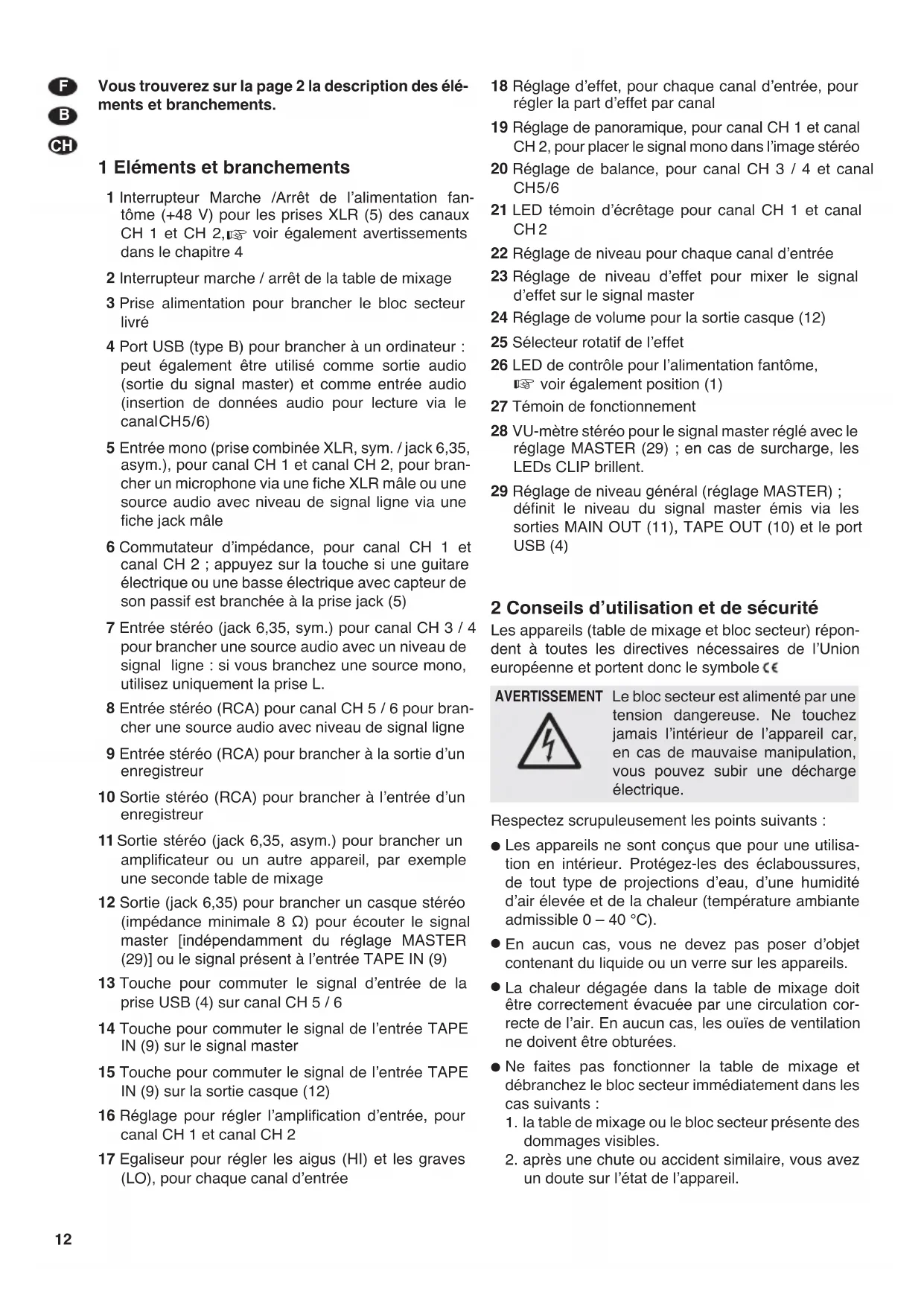 Les appareils (table de mixage et bloc secteur) répondent à toutes les directives nécessaires de l'Union européenne et portent donc le symbole «