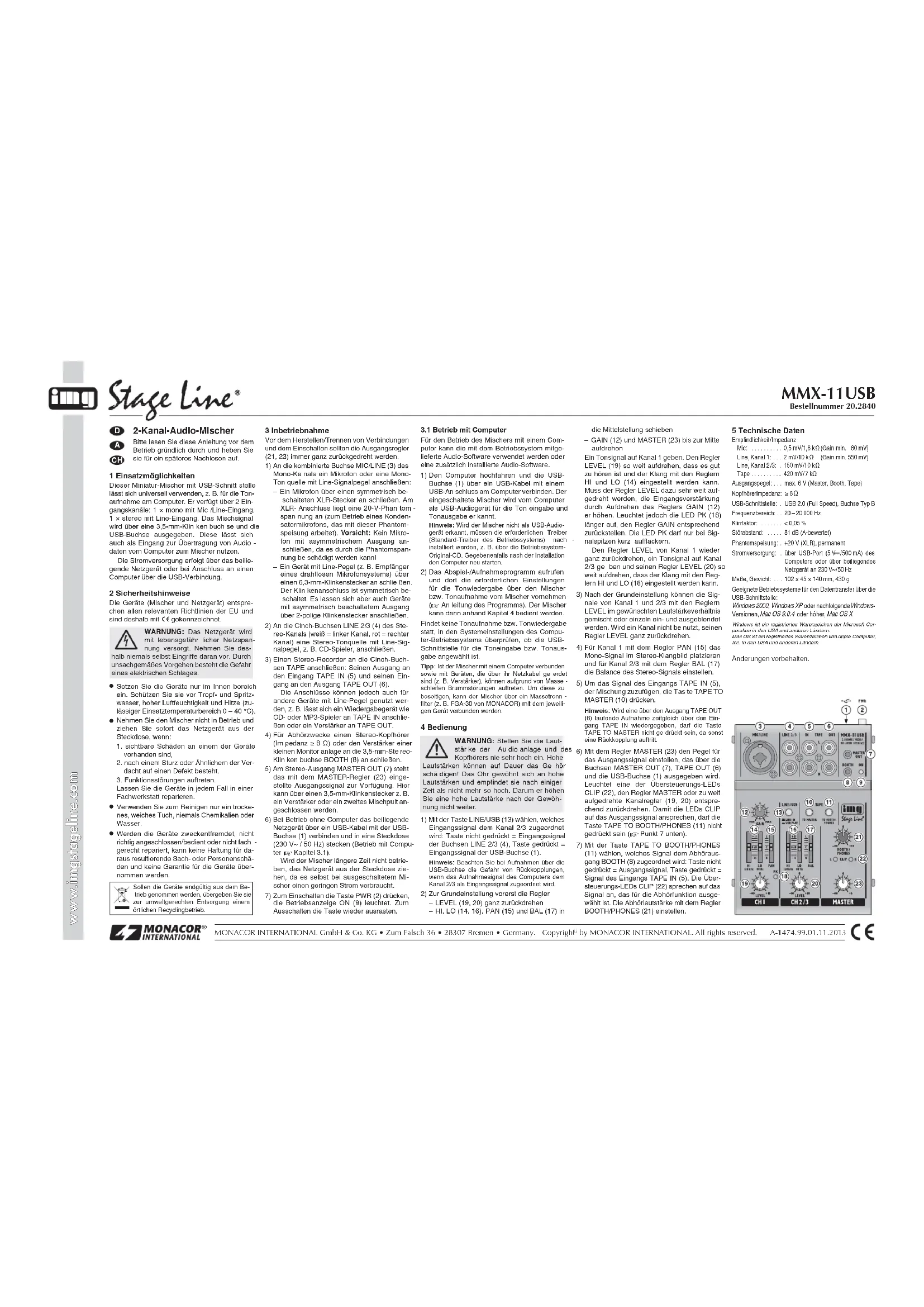 Retrouvez gratuitement la notice de l'appareil MMX11 USB Monacor au format PDF.