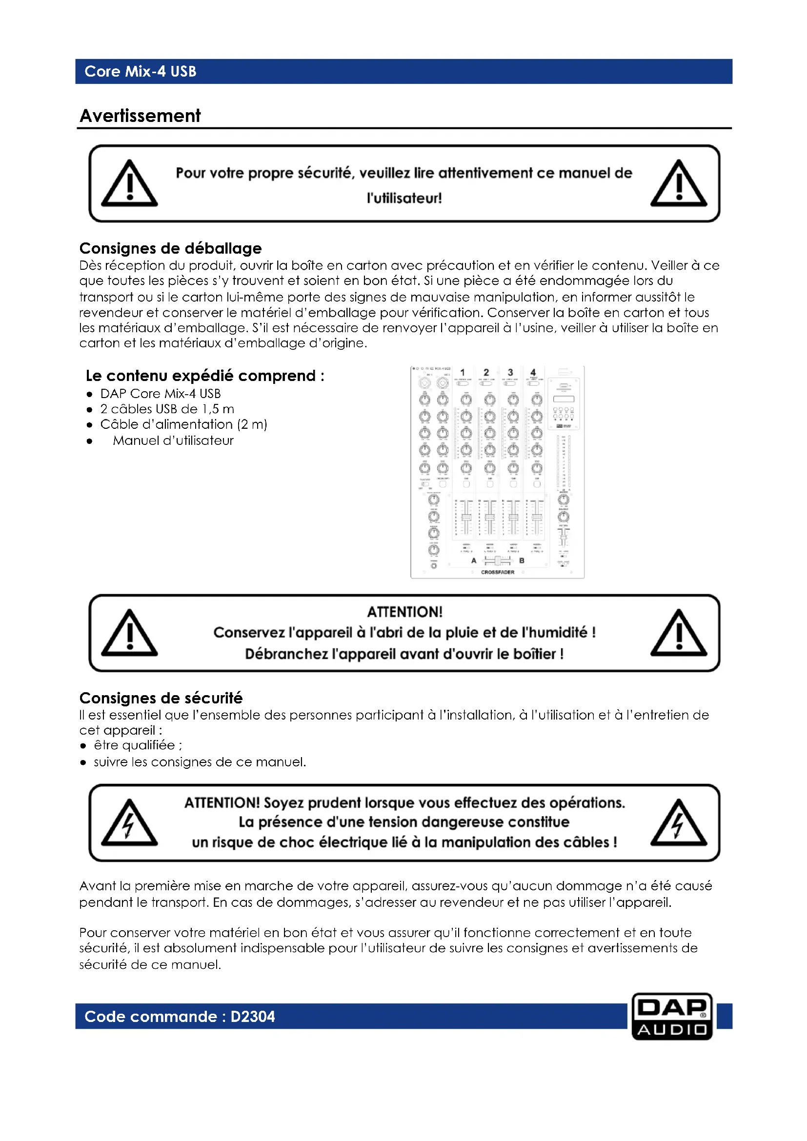 Core Mix4 USB - Table de mixage DAP-Audio - Notice d'utilisation et mode d'emploi gratuit