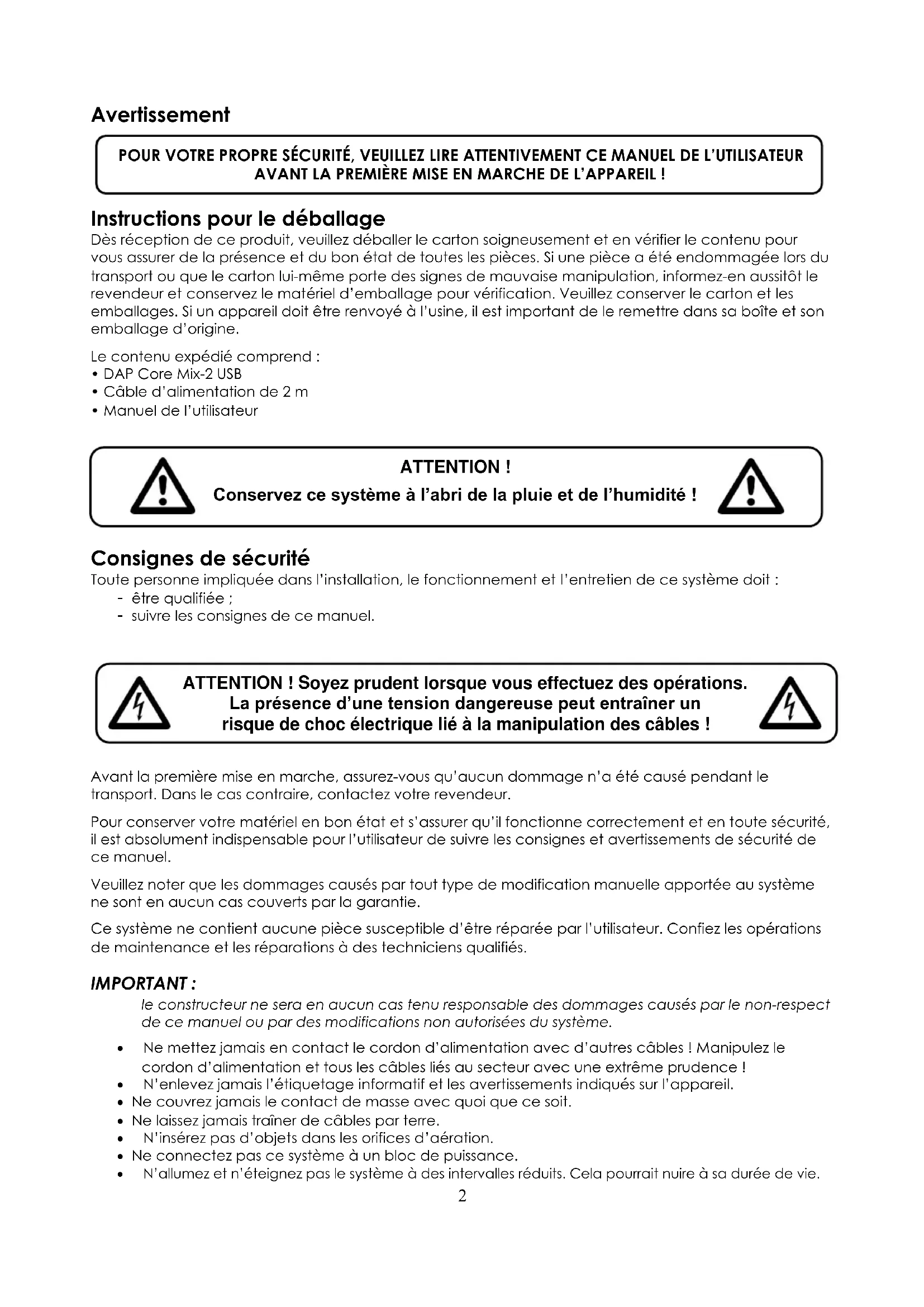 MODE D'EMPLOI Core Mix2 USB DAP-Audio